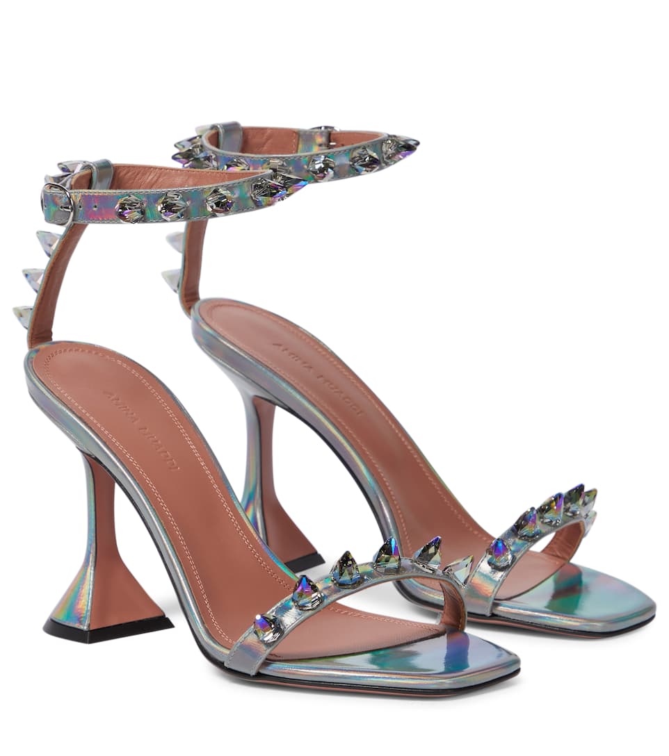 Ivete Sangalo appeared on Brazil’s The Masked Signer wearing the Francesco Murano Spring 2021 anthracite ossimoro jacket dress paired with $1,129 Amina Muaddi “Julia” sandals, styled by Pedro Sales.