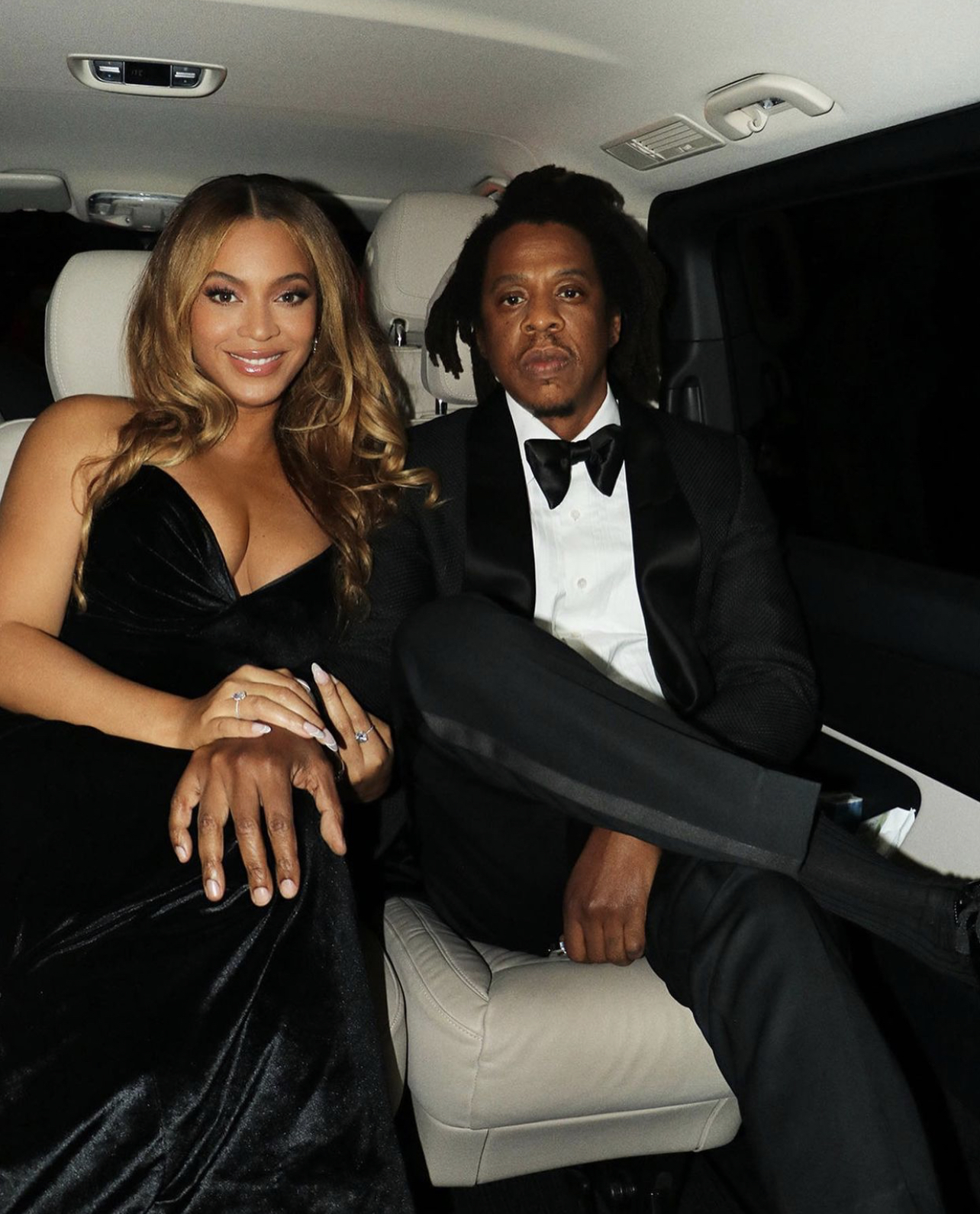 While attending the world premiere of the film The Harder They Fall at the London Film Festival in England, Beyoncé and producer Jay-Z kept it black-tie sharp in their head-turning looks. Beyoncé wore a custom black velvet strapless gown by Valdrin Sahiti, styled by KJ Moody and Marni Senofonte. She paired the gown with blue sunglasses, Alexander McQueen heels, and a $2,195 Judith Leiber slim rectangle crystal clutch. Jay-Z wore a Tom Ford look including their black Atticus honeycomb cocktail jacket, white pleated button shirt, black tuxedo-style trousers, satin butterfly bowtie, and patent leather shoes. His look was styled by June Ambrose.