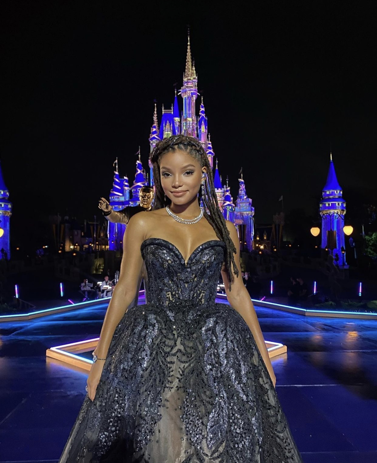 Halle Bailey channeled her inner Disney Princess as she performed at ABC Network’s The Most Magical Story on Earth: 50 Years of Walt Disney World. Halle Bailey wore a Elie Saab Spring 2021 Couture gown, styled by Nikki Cortez. For accessories, she went with Nadine Aysoy jewelry.