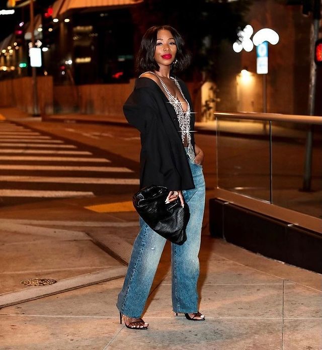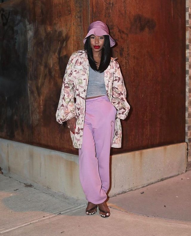 Next is Khalana Barfield. Layering is a key element to Fall wardrobe and Kahlana executes flawlessly with her chic street style. Pairing sweat pants and heels allows for comfortability and edge. She does a great job at balancing volume and creating interesting silhouettes with her attire. From hair and make up to accessories, this Bombshell is put together from head to toe.