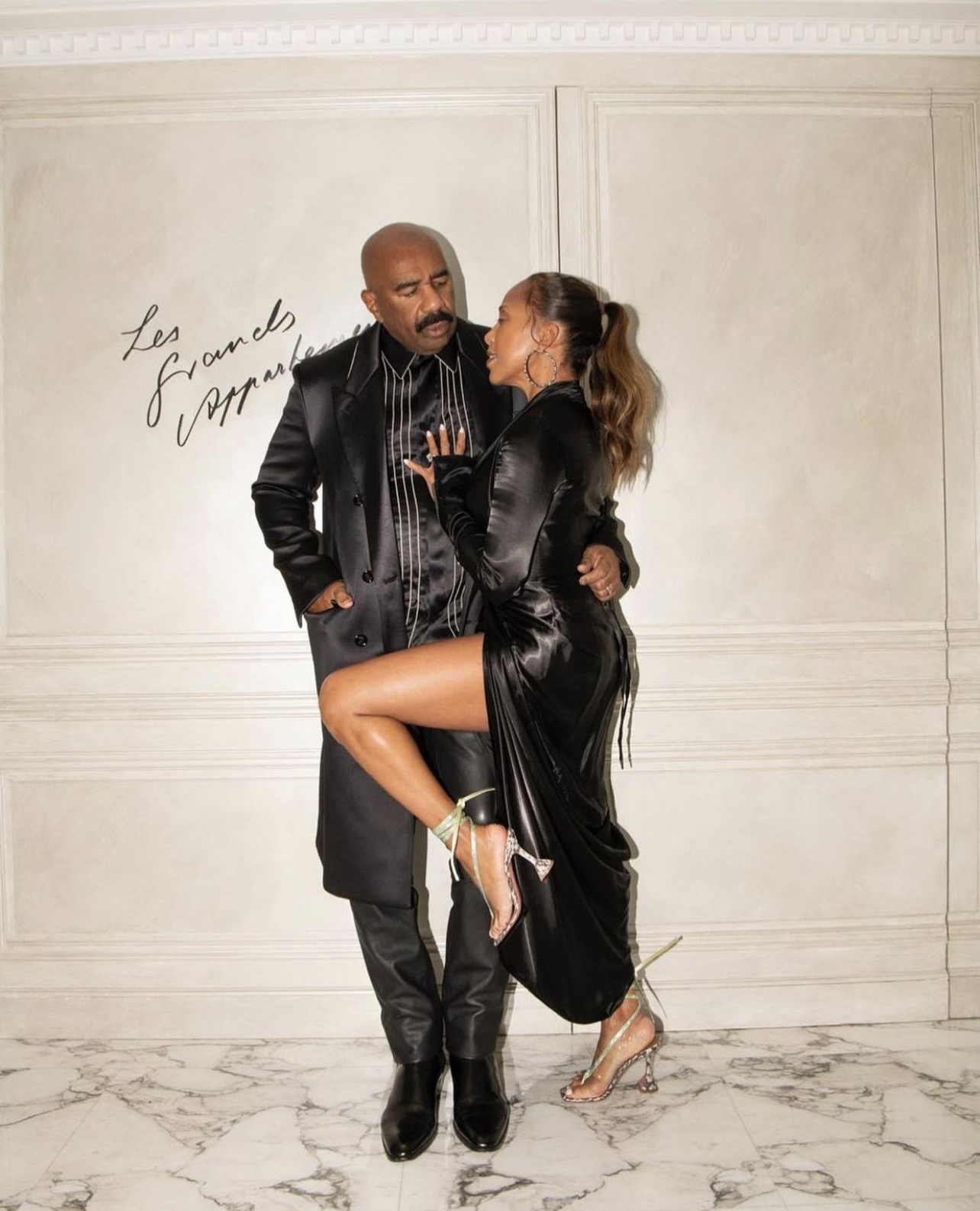 Marjorie and Steve Harvey delivered yet another Fashion Bomb couple style moment while in Paris, continuing to embody two things the city is most known for: love and style. The two were spotted in classy all-black looks as they stepped out for the night in the famous French town.