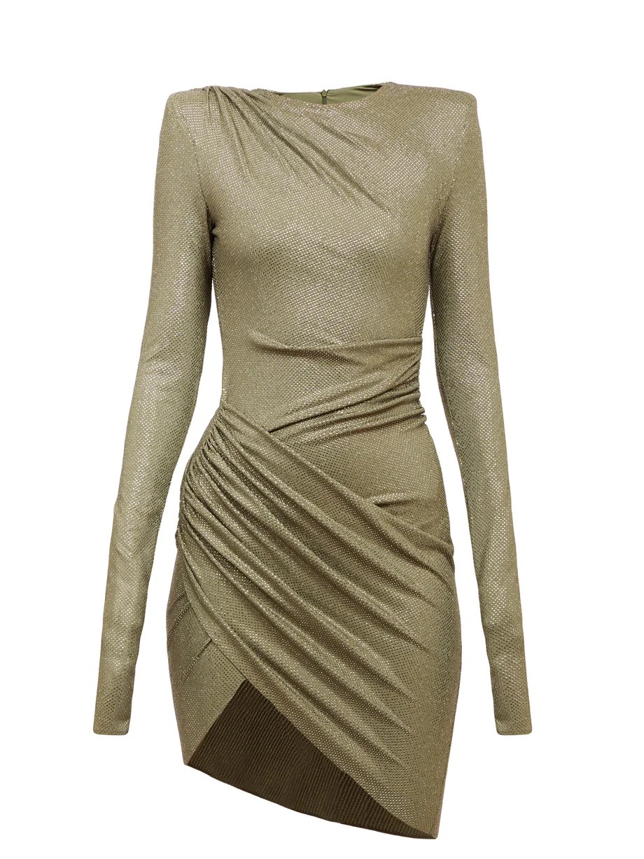 Tiffany Haddish wore a $6,253 Alexandre Vauthier Micro crystal-embellished wrap-front mini dress, styled by Wayman and Micah. Haddish paired the shimmering dress with bronze heeled sandals and rings as her accessories. She also rocked a semi-wispy short hairstyle to go along with the dress.