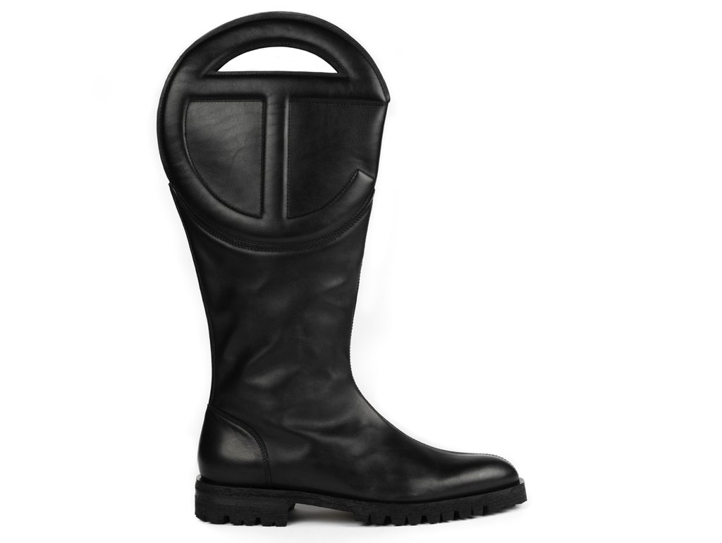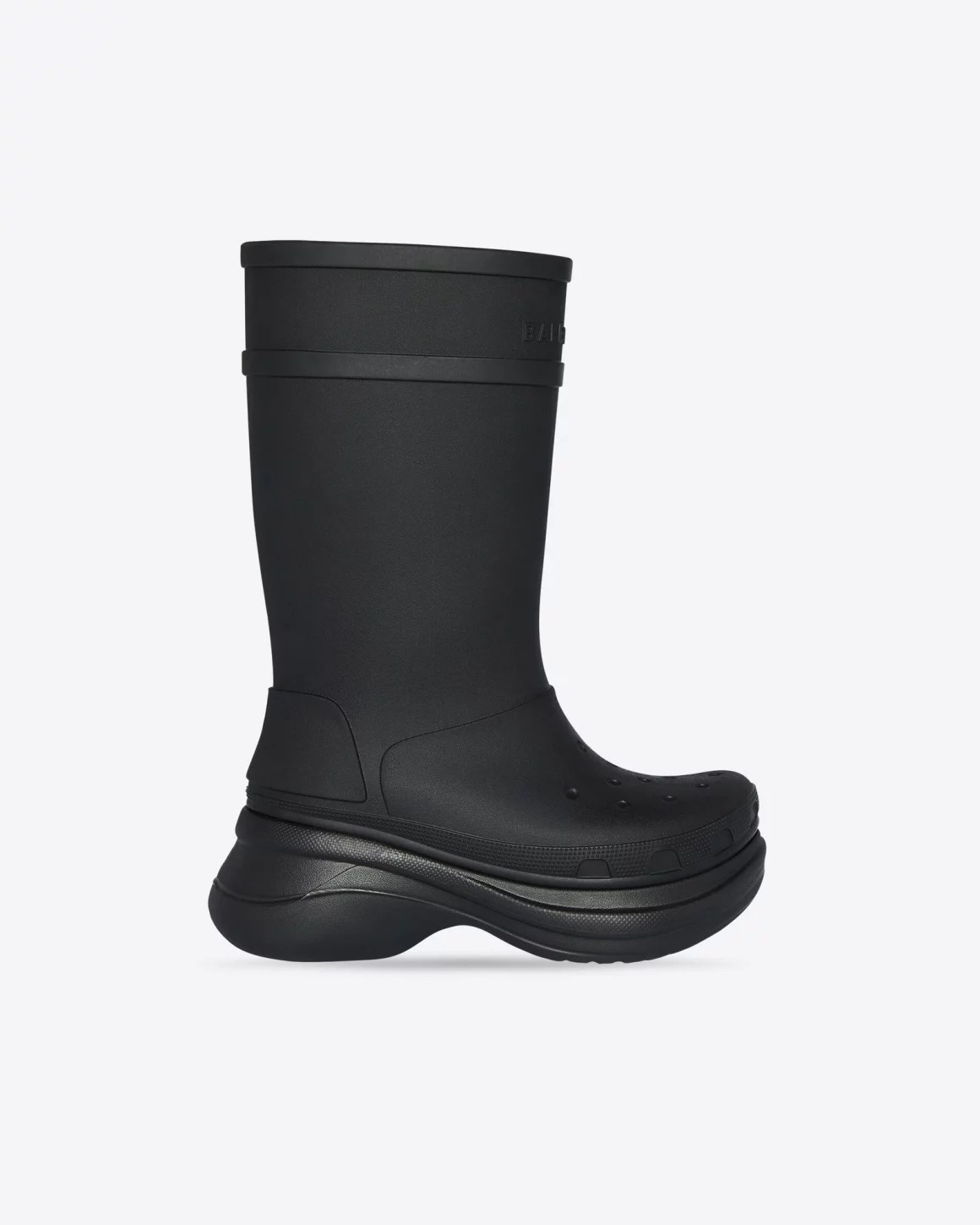 The model twins were outfitted in navy and black one-shoulder catsuits and $769 leather logo boots from the brand. Posing in their matching Telfar ensembles, the pairing was seen in two photos with the DONDA rapper, who wore a grey hoodie, jeans, leather jacket, leather Balenciaga crossbody bag, and$695 Crocs x Balenciaga boots.