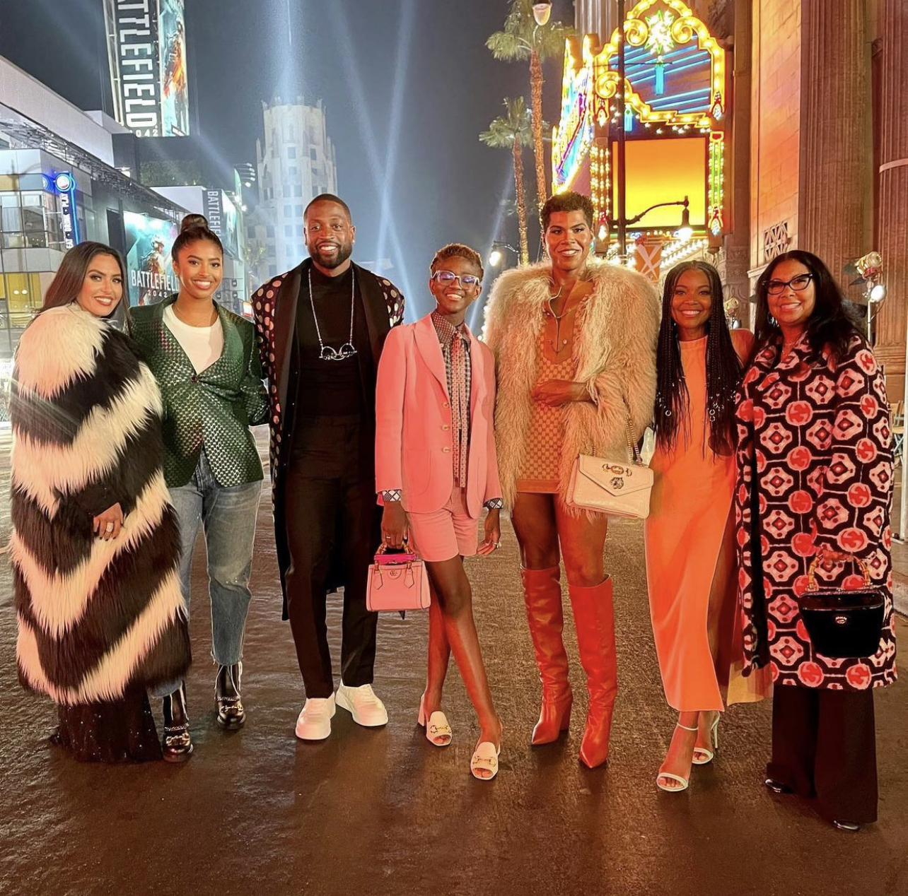 Gabrielle was outfitted in Gucci’s silk dress with slit and cut-out detail, mint sandals, and rose gold clutch. Both Gabrielle and Zaya were styled by Thomas Christos while Dwyane was styled by Jason Bolden.