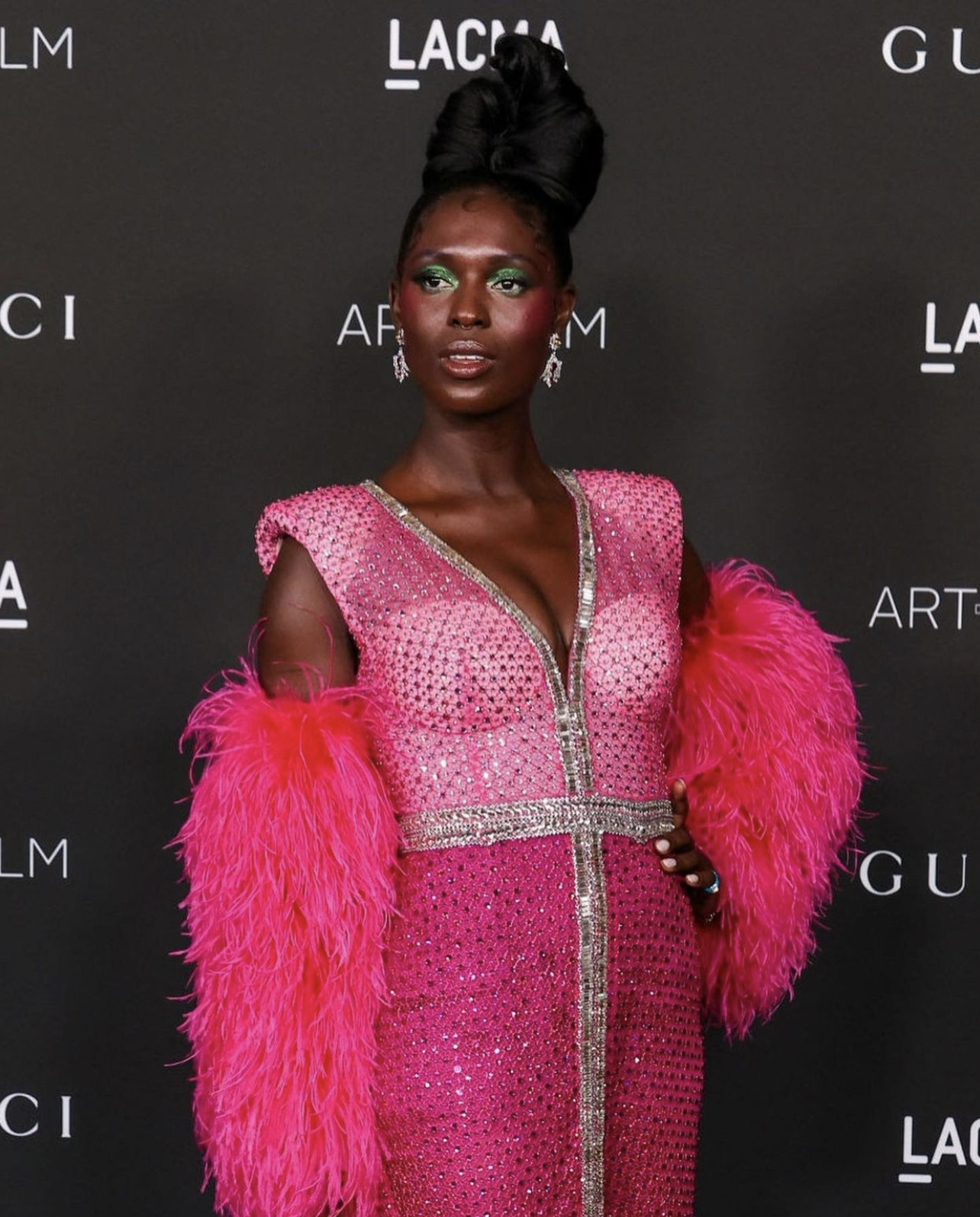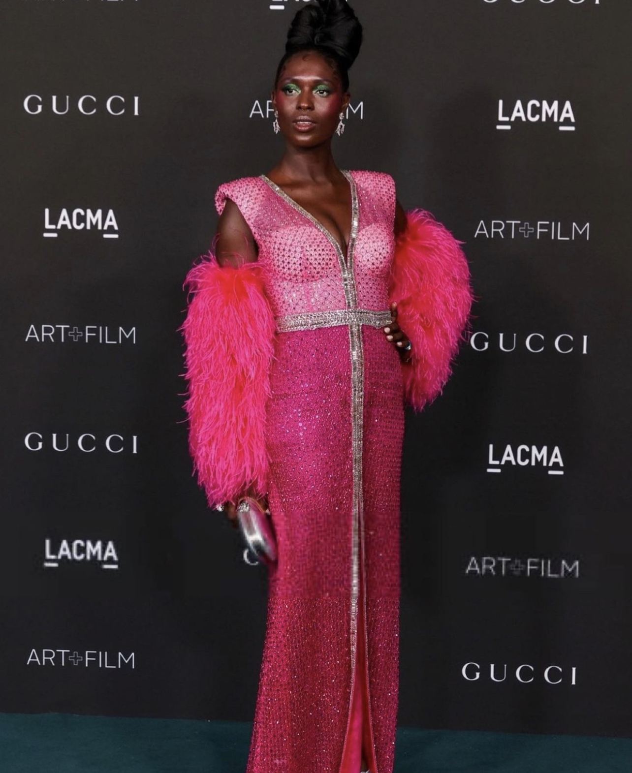 Jodie Turner-Smith wore a Gucci pink gown to the 2021 LACMA Gala.