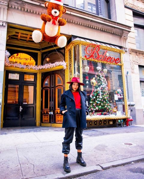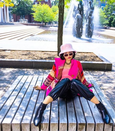 Anita’s style is bold and quirky with a playful edge. She is not afraid of loud colors and no outfit is complete for her without a good hat, whether the look is street style or casual.