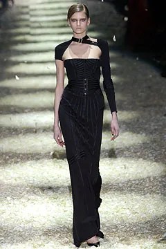 Kourtney Kardashian attended the wedding of Simon Huck and Phil Riportella, joined by her fiancé and drummer Travis Barker. For the ceremony, she wore a Gucci by Tom Ford Falll 2003 black bondage one-arm gown, styled by Dani Michelle.