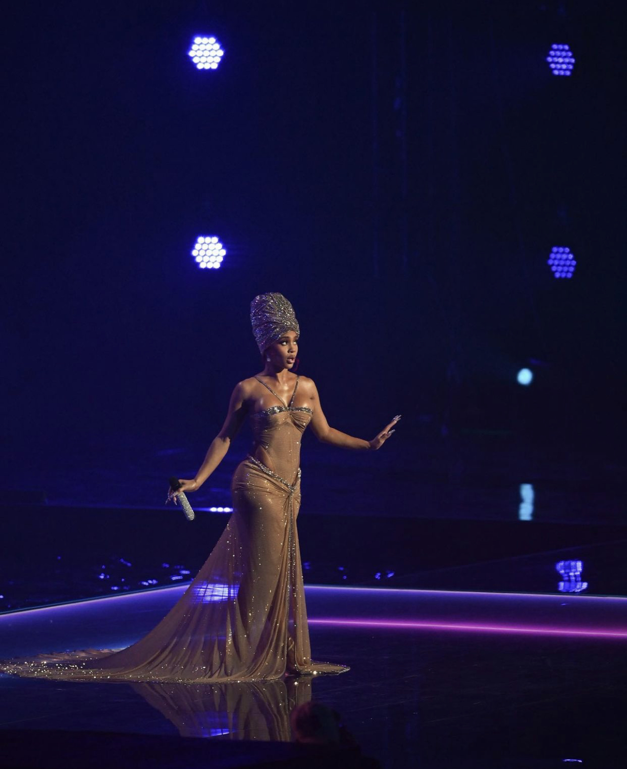 Saweetie hosted this year’s MTV EMAs wearing countless looks, but her shimmering two-piece look was definitely a fan-favorite. Saweetie wore a custom Dolce and Gabbana nude silk two-piece ensemble which featured allover Swarovski crystals and a long train. She paired the set with Alevì Milano heels. Her look was styled by Wayman and Micah.