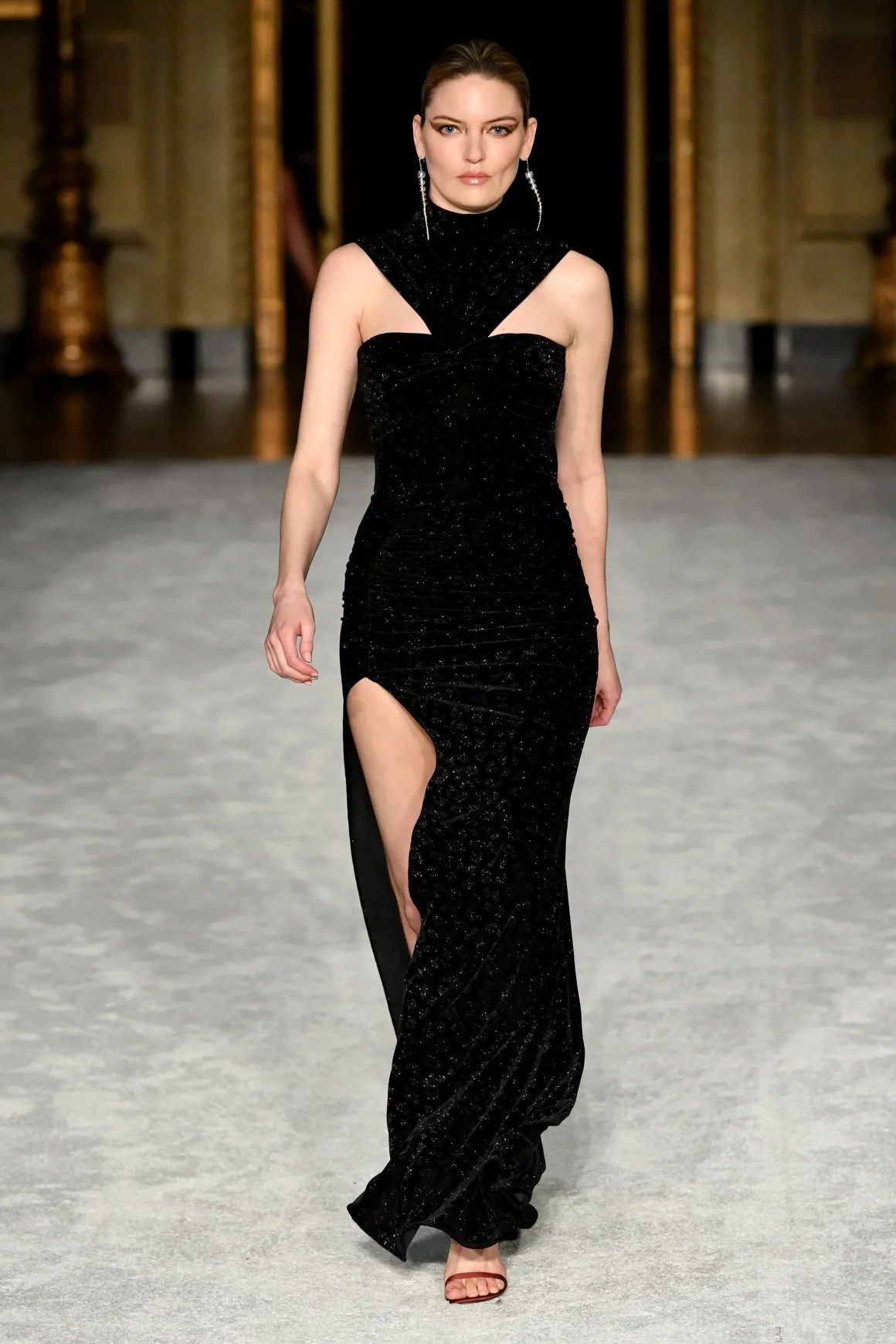Cardi B wore a $3,200 Christian Siriano Fall 2021 velvet shimmer leopard cutout halter high-slit gown, styled by Kollin Carter. To go along with the stunning dress, she rocked a pair of Saint Laurent “Kate 105” crystal-embellished satin sandals and earrings matched with luscious body waves.