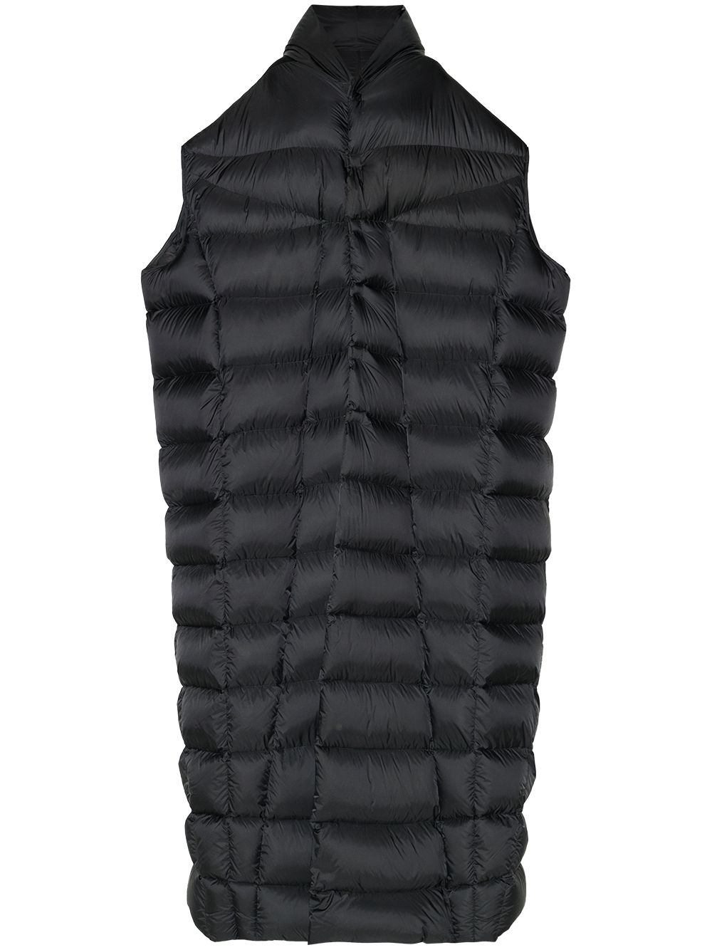 Monica posed in a $4,365 Rick Owens Fall 2021 black Geth long puffer vest. Underneath the eye-catching piece, she wore a Wolford look including a black turtleneck top and form-fitting trousers. Rounding off the look, she wore a pair of $1,960 Balenciaga black leather over-the-knee boots (sold out). Her look was styled by Jeremy Haynes and assisted by Marc Taylor.