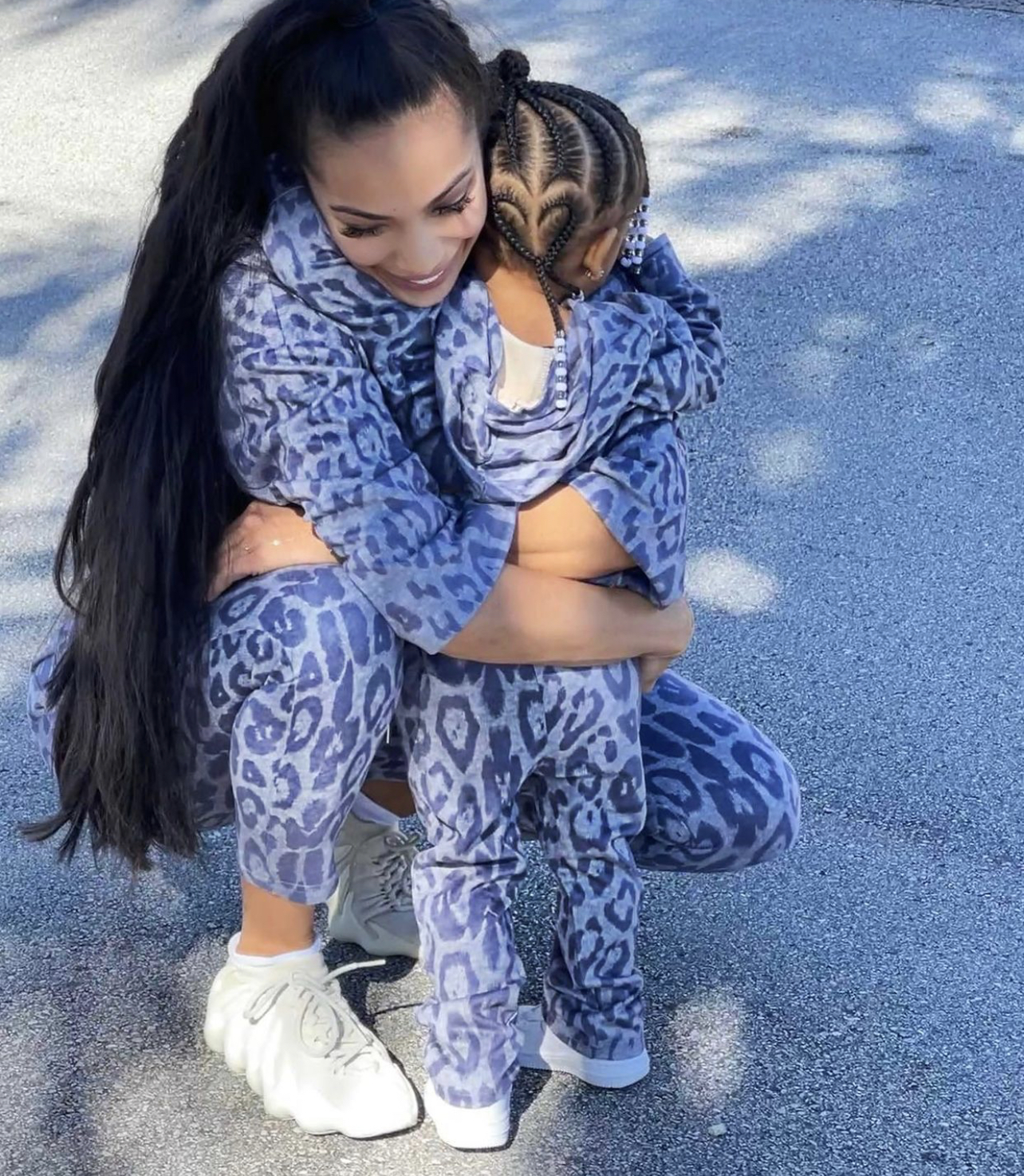 Erica Mena and her daughter Safire were also spotted “twinning” in matching sets. The mother-daughter duo rocked blue leopard print jogger sets from Fashion Nova.
