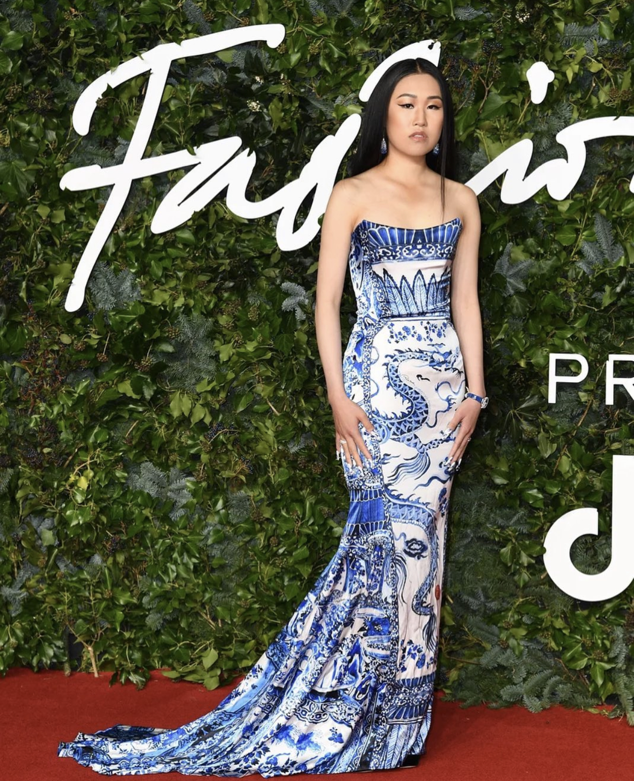 Jamie Xie wore a vintage Roberto Cavalli Fall 2005 dress, styled by Law Roach.