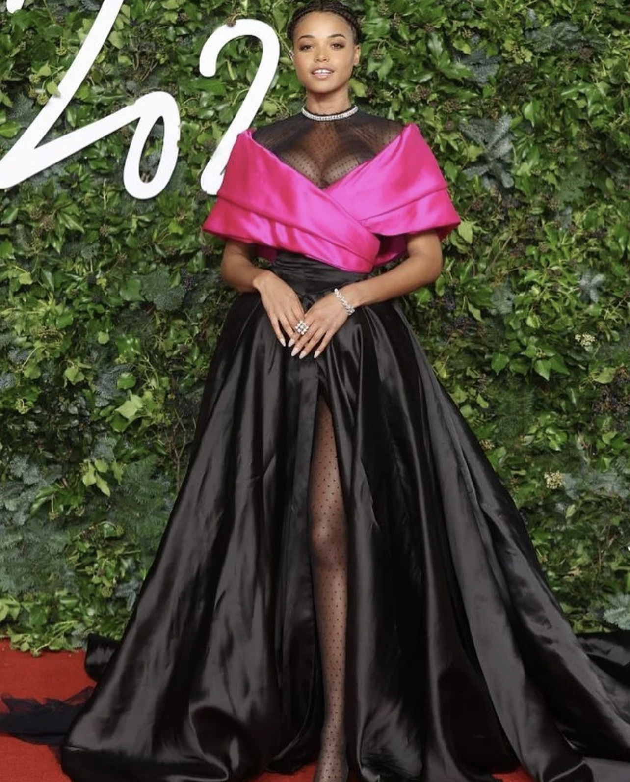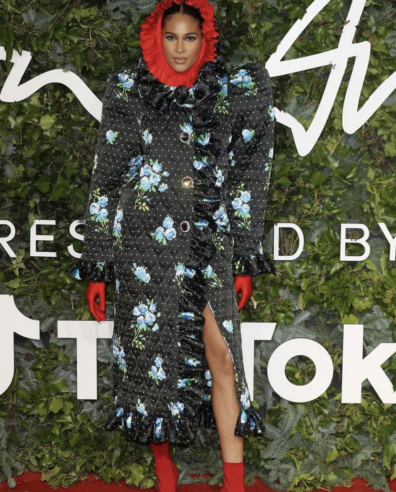 Ella Balinska wore a Richard Quinn Spring 2022 look, styled by Jason Bolden.