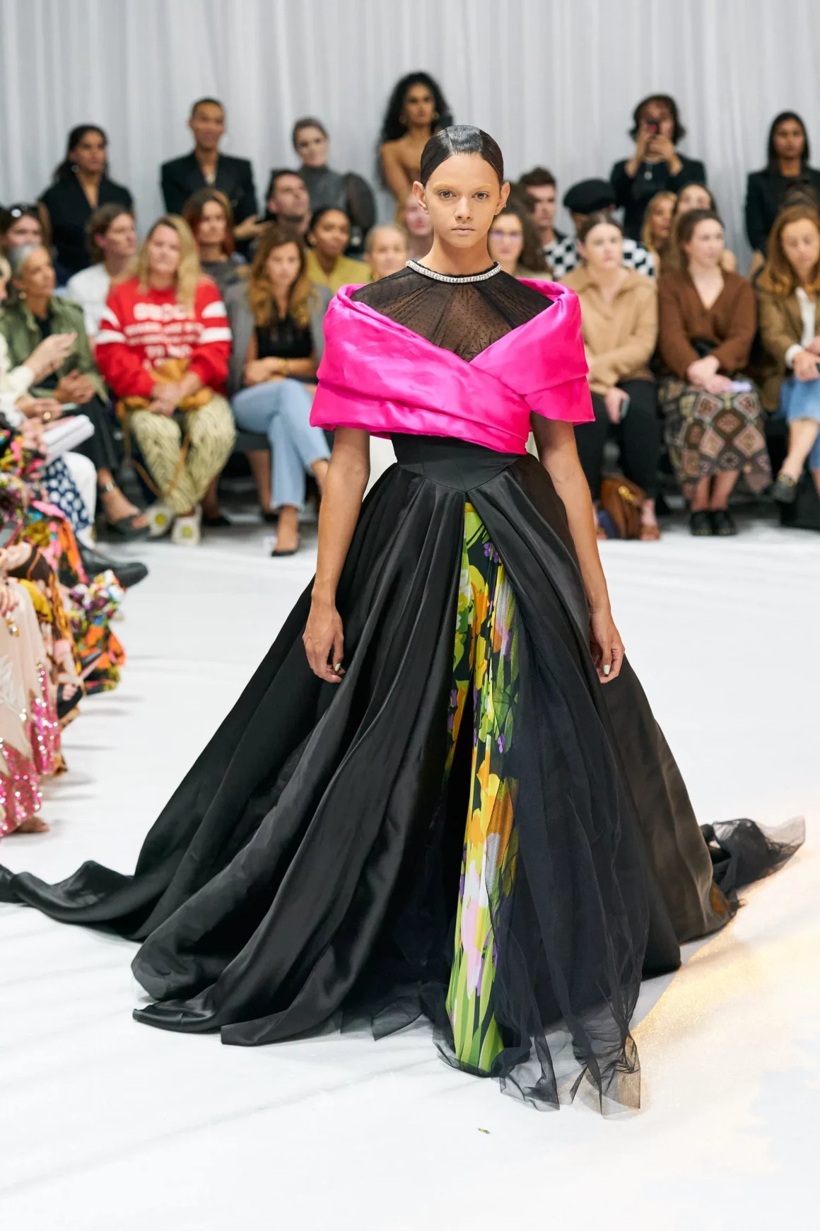 Cindy Bruna wore a Richard Quinn Spring 2022 look, styled by Mickael Carpin.