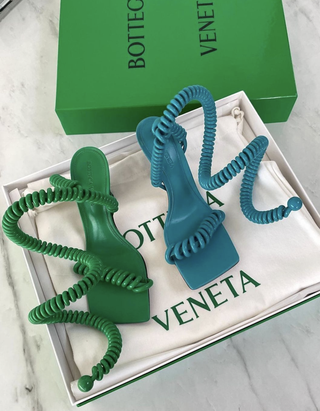 While last year was filled with square toe silhouettes and knotted detailing, this year his shoe designs have taken a more creative turn featuring shearling, spiral cords and feathers. Let’s not forget that Bottega green will forever be synonymous with the brand, much like Tiffany’s blue.