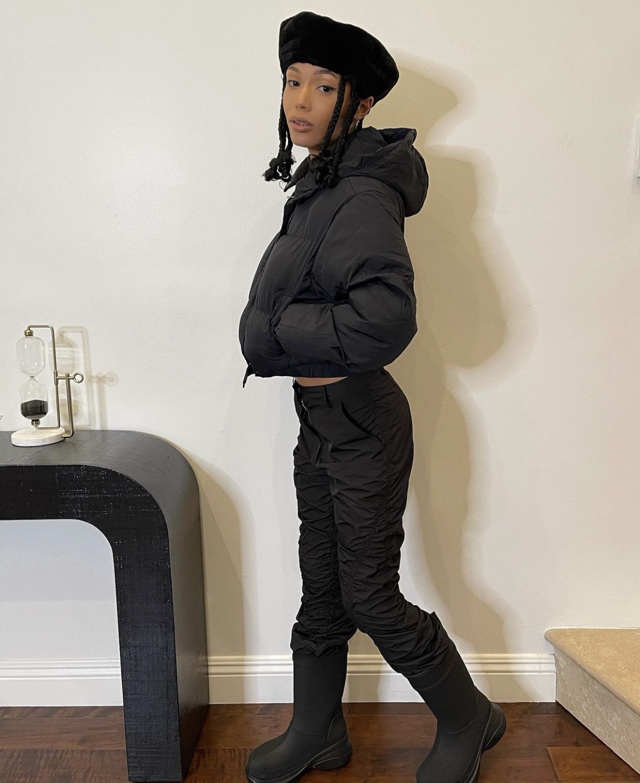 Coi Leray took to the ‘gram to share her latest look. Included in her all-black outfit, she wore a cropped black puffer jacket from Fashion Nova.