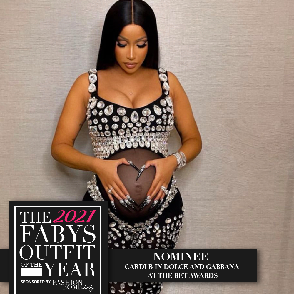 Cardi B had everyone shook with the surprise announcement of her second pregnancy, which she revealed during her performance at the 2021 BET Awards with the Migos. Of course, she was dripped in designer wearing a custom crystal-embellished Dolce and Gabbana look, styled by Kollin Carter.