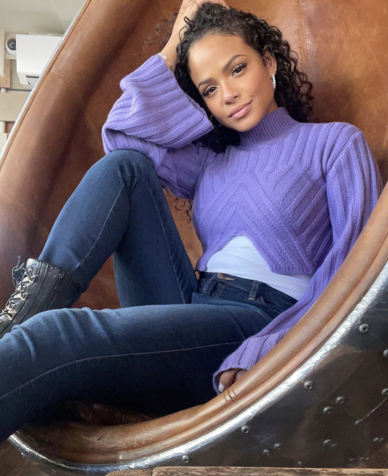 Christina Milian was spotted in France, keeping it stylish and cozy with her latest look. The actress-singer rocked a purple cropped sweater from Fashion Nova.