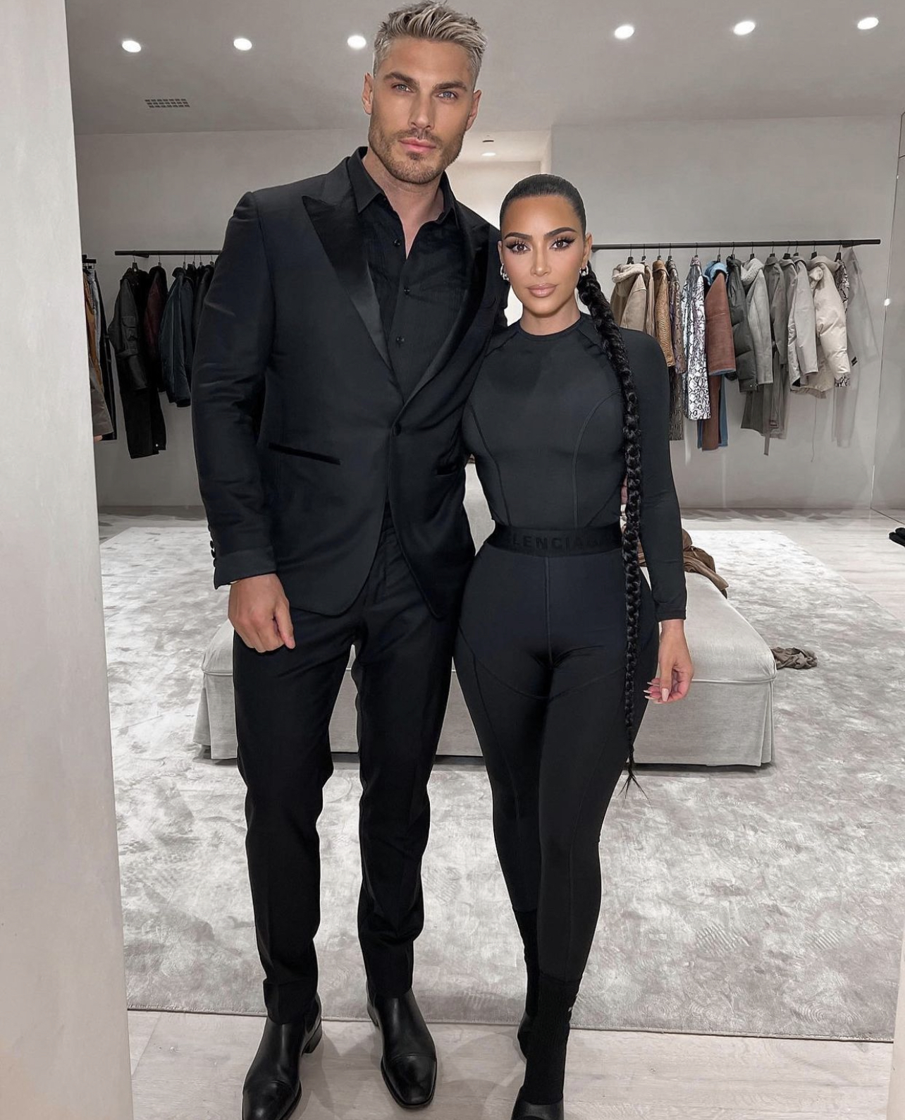 Kim Kardashian snagged a picture with hairstylist Chris Appleton where the two donned black looks together.