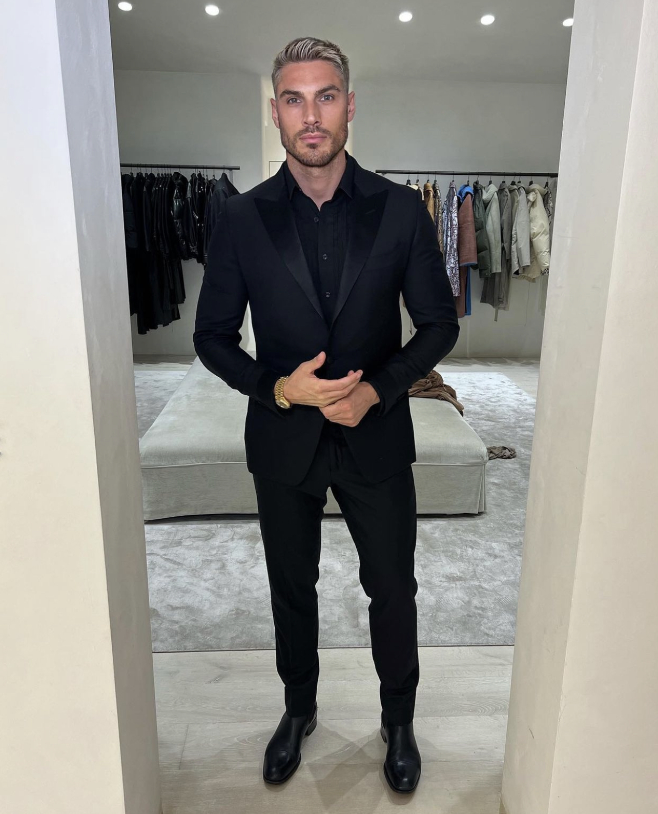Chris Appleton went for a classic all-black suit as his attire for the evening.