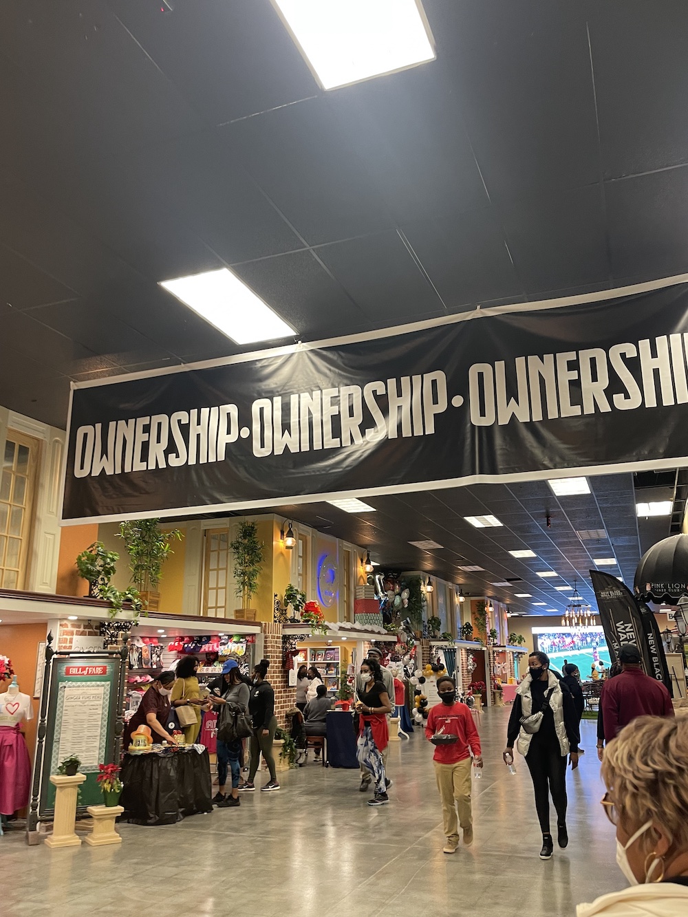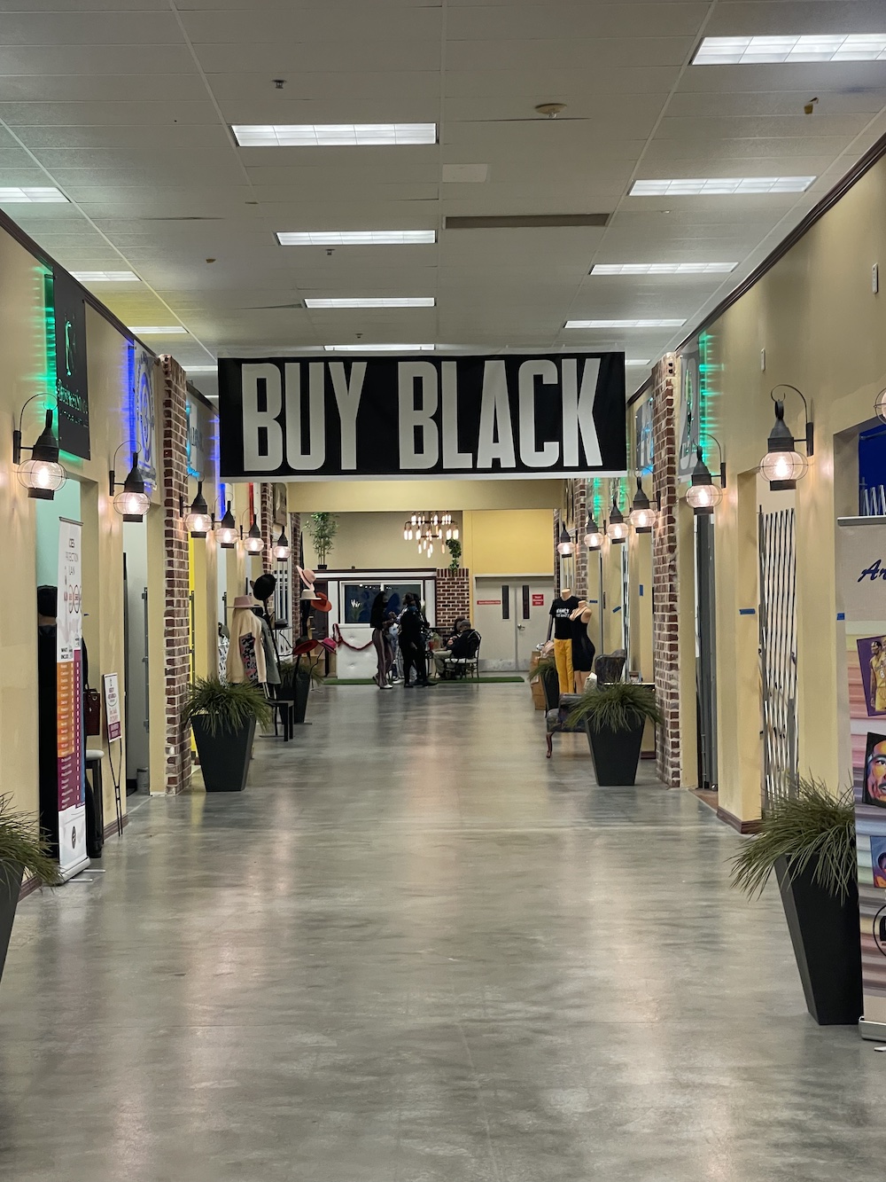 The mall is full of black owned vendors, selling fashion, art, food, and more! The original Black Wall Street was in the Greenwood district of Tulsa, Oklahoma, and was the hub of many thriving black owned businesses. A race war in 1921 resulted in the death of many black professionals, along with looting and raging fires that completely obliterated the area. The shopping hub in Stonecrest embodies the spirit of Greenwood, with signs that say ‘Ownership,’ and ‘Buy Black.’
