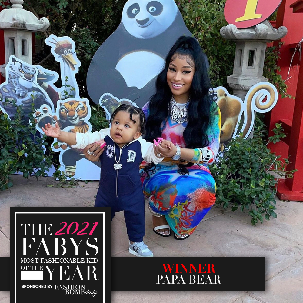 Nicki Minaj and Kenneth Petty’s adorable Papa Bear is our 2021 Most Fashionable Kid. Matching with his parents in designer looks, Papa Bear stole our hearts with his style and cuteness overload.