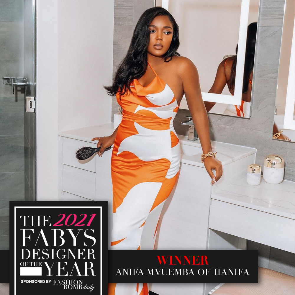 Winning the category for a second year in a row, Anifa Mvuemba of Hanifa is our 2021 Designer of the Year. Captivating us with her absolutely-chic designs and innovative fashion presentations this year, she continues to be a game-changer who turns heads and makes history with more greatness to come.