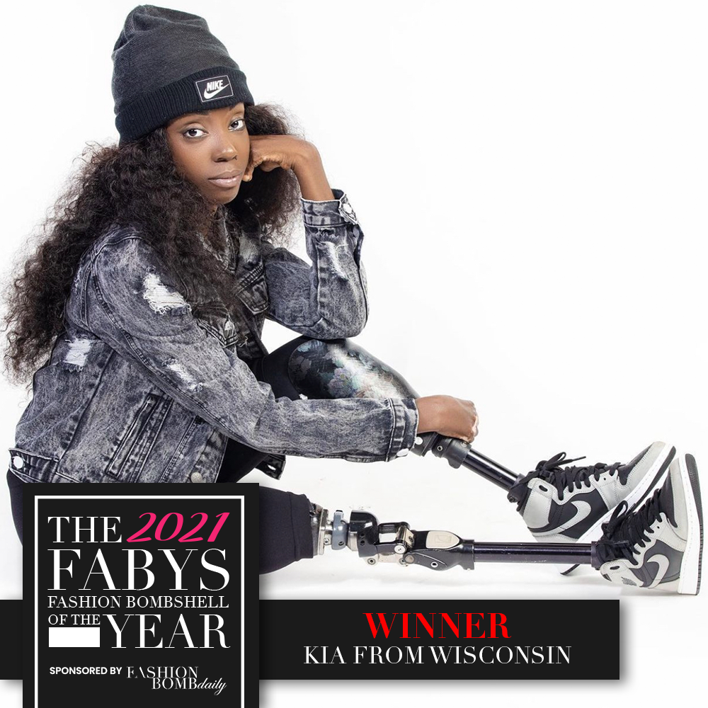 Amputee model Kia from Wisconsin became our Fashion Bombshell of the Year! Snagging over 48% of the votes, her confidence and positive energy matched with her individualistic personal style made her a bombshell to watch.