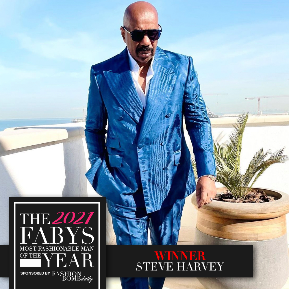Going for the three-peat, Steve Harvey is once again our Faby’s Most Fashionable Man of 2021. It is no secret that Steve Harvey is a fan-favorite fashionisto with a style that incorporates rich hues and luxe fabric choices. Throughout the year, the television host did not miss a beat with his eye-catching looks.