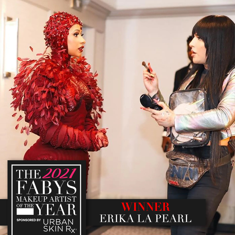Erika La Pearl is the winner of our 2021 Fabys Makeup Artist of the Year, sponsored by Urban Skin Rx. This is the makeup artist’s second time winning the category, with her first win during our first Fabys in 2019. With over 43% of votes, Erika La Pearl’s artistry leaves her clients, like regular Cardi B, looking undeniably flawless at all times.