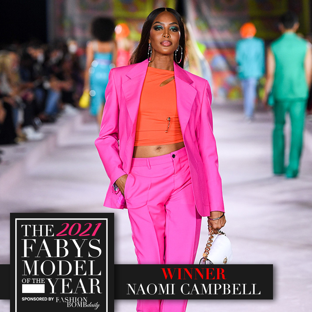 Naomi Campbell has been crowned as our Fabys 2021 Model of the Year. With an unforgettable strut that has been gracing the biggest runways for years now, Naomi Campbell continues to prove that she is truly a fashion icon.