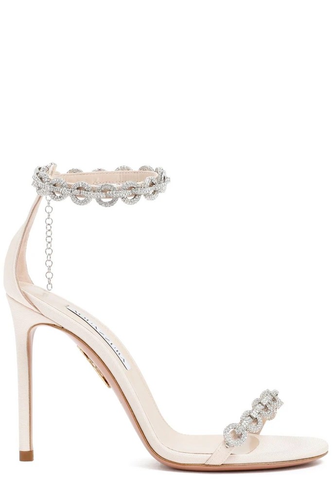 For her first look, Yung Miami wore a $6,900 Burberry “Thalia” dress paired with $1,203 Aquazurra crystal embellished open toe sandals.