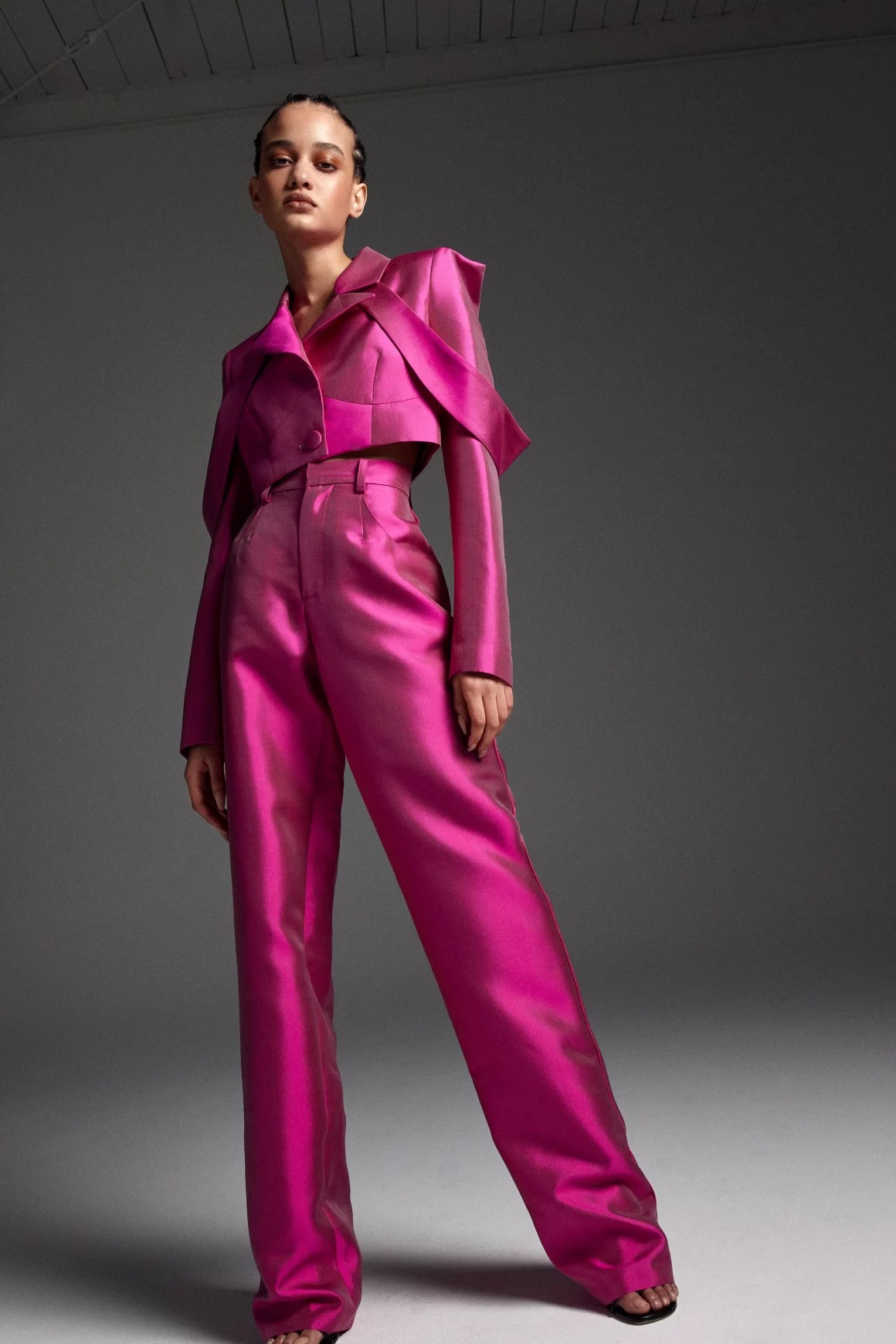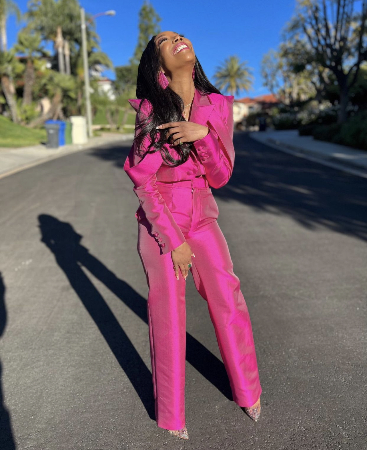 Brandy struck a pose in an Aliétte Fall 2021 suit, including the $1595 strong-shoulder bustier cropped suit jacket and straight-let trousers. The dazzling pink suit was paired with $1,095 Christina Louboutin Spikaqueen heels. For accessories, the singer wore Jude Benhalim earrings and a Shay Jewelry necklace and rings. Her look was styled by Ashley Sean Thomas and assisted by Stephanie Andrea.