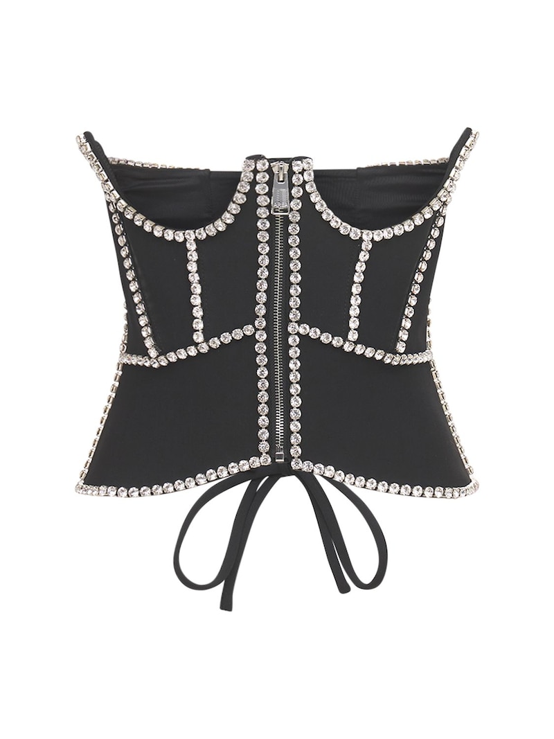 Keyshia Ka’oir wore a $780 Area embellished cutout crepe corset top paired with black trousers by the brand as well. Rounding off the look, she opted for a chunky lock chain necklace, crystal-adorned Hermès Birkin bag and $1,050 Mach & Mach black double bow crystal-embellished satin pumps.