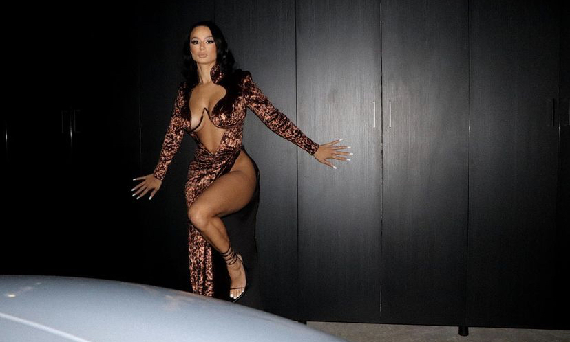 While taking a few pictures for her Instagram feed, she slayed in a Aura 22′ Lena Berisha gown. The gown is a leopard print design, with an opening on the left side, that starts from the hip-length and slits down. Draya paired the gown with laced black Femme heels.