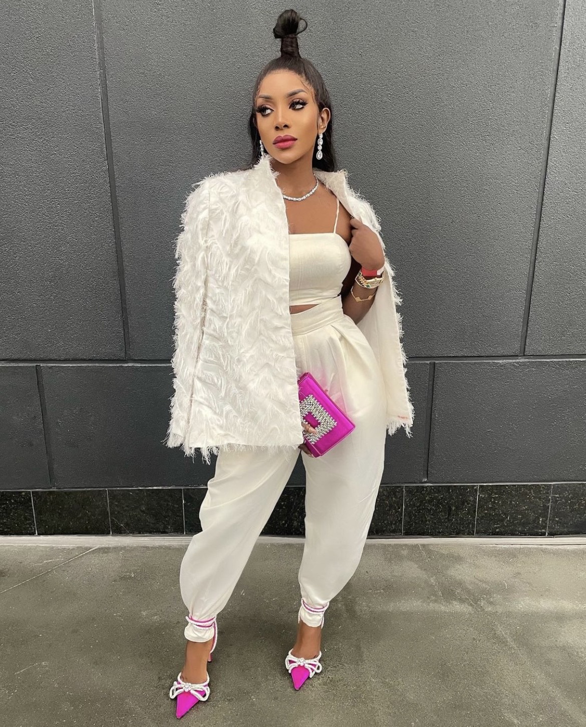 Nothing short of fabulous, this Bombshell doesn’t shy away from bold colors or fabrics. Her style is cultural yet eclectic. Whether she is rocking a blazer and pants or a cocktail dress, she is always serves an interesting silhouette accompanied with great accessories and textured fabrics.