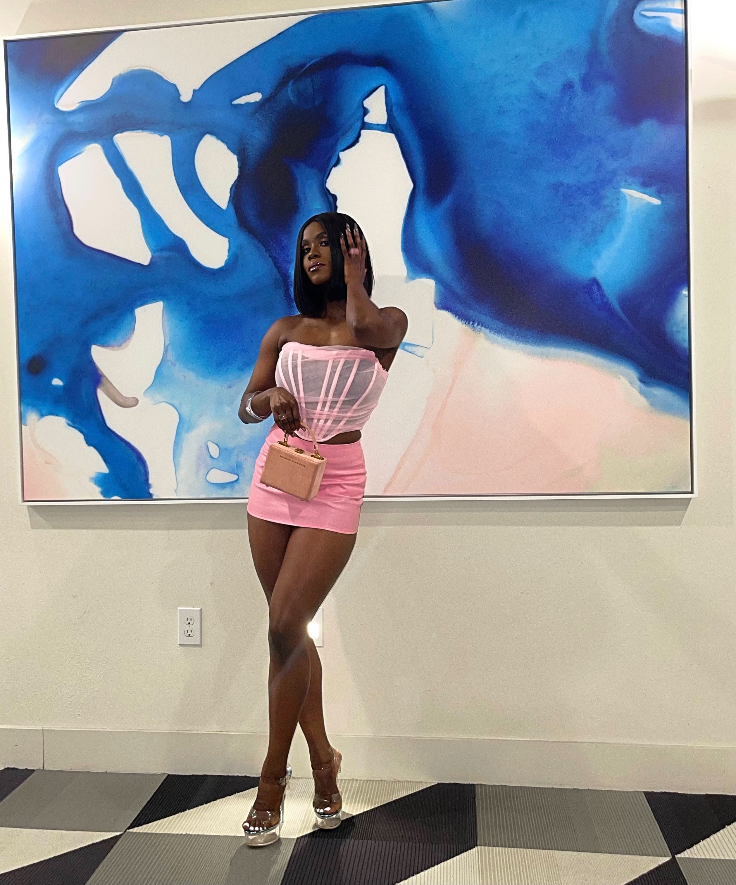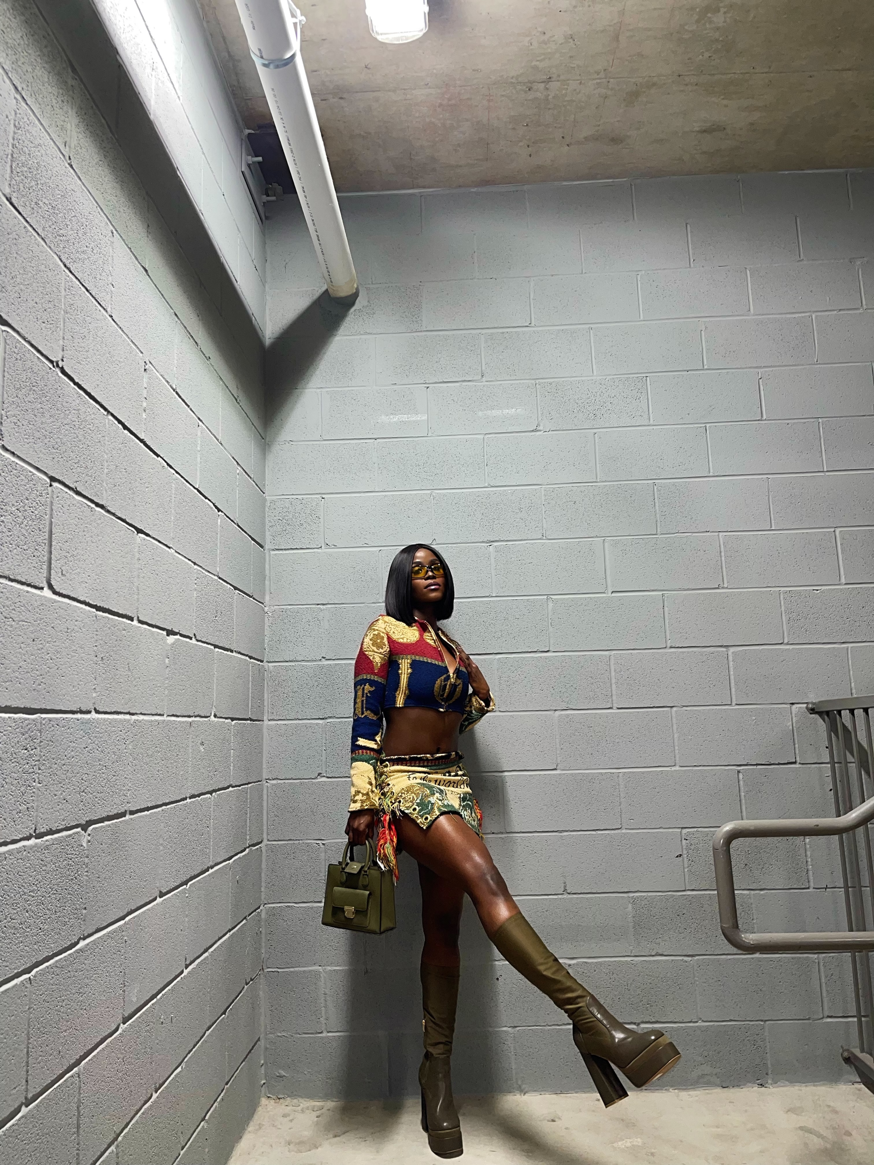 She says, “My style is a good mixture of tomboy with a splash of sexy. It can range from edgy to streetwear, to chic! I live for great monochromatic looks and two piece sets.”