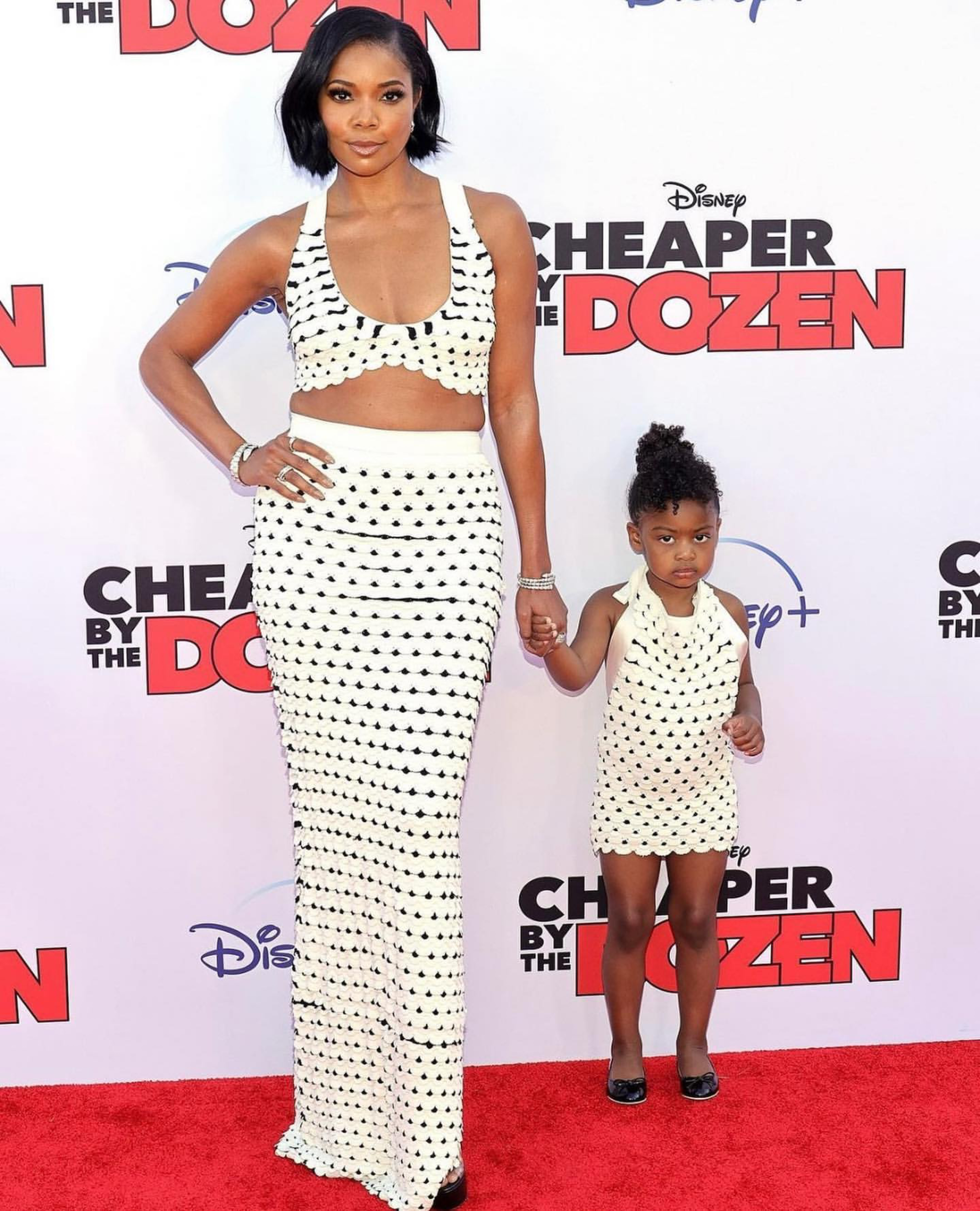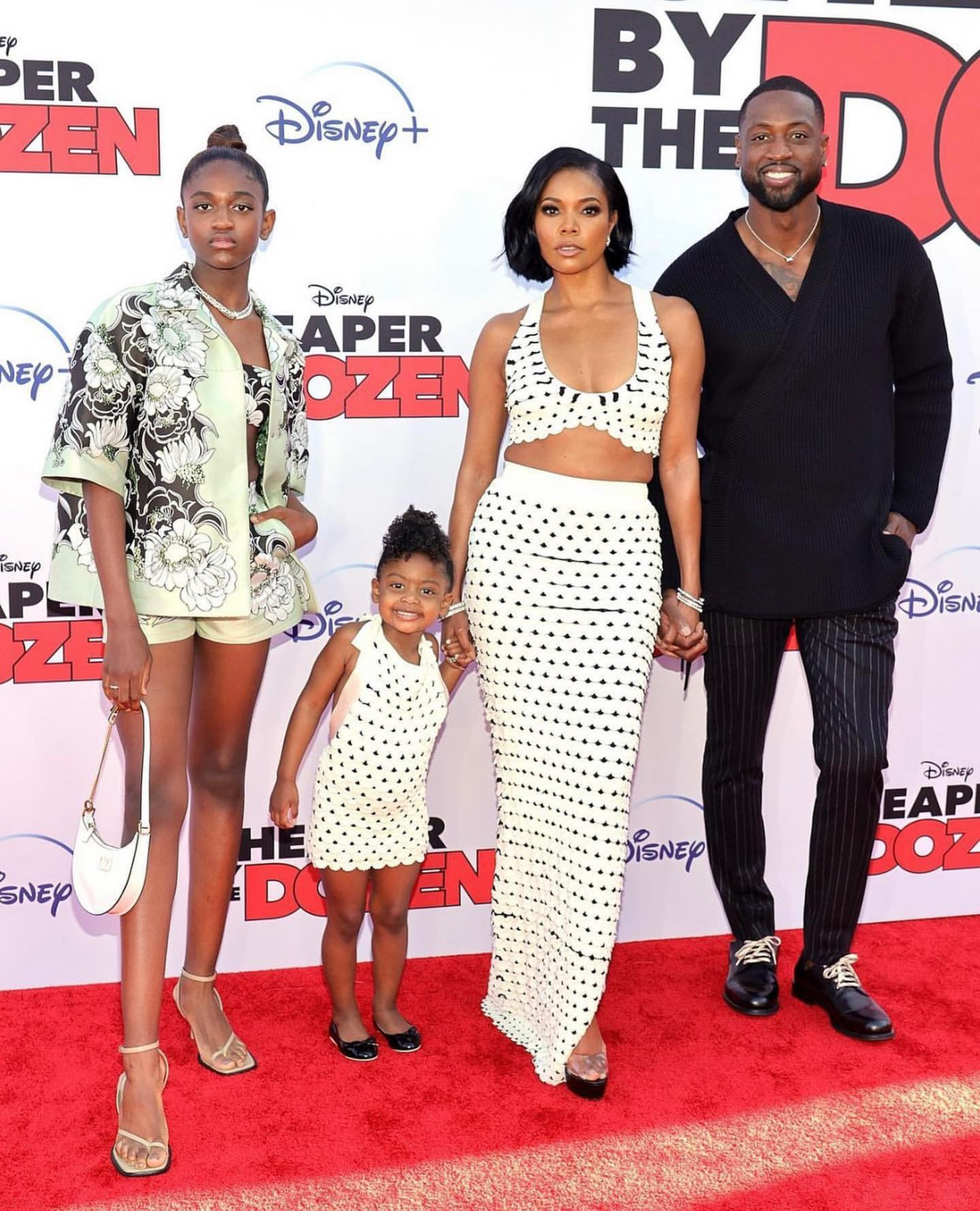 It was a family affair at the Cheaper by the Dozen premiere, with Gabrielle Union and Kaavia James in matching Altuzarra FW22 looks and #ZayaWade in a #Valentino SS22 RTW look, styled by Thomas Christos. Dwyane Wade completed the family portrait in a look by Dunhill , styled by Jason Bolden .