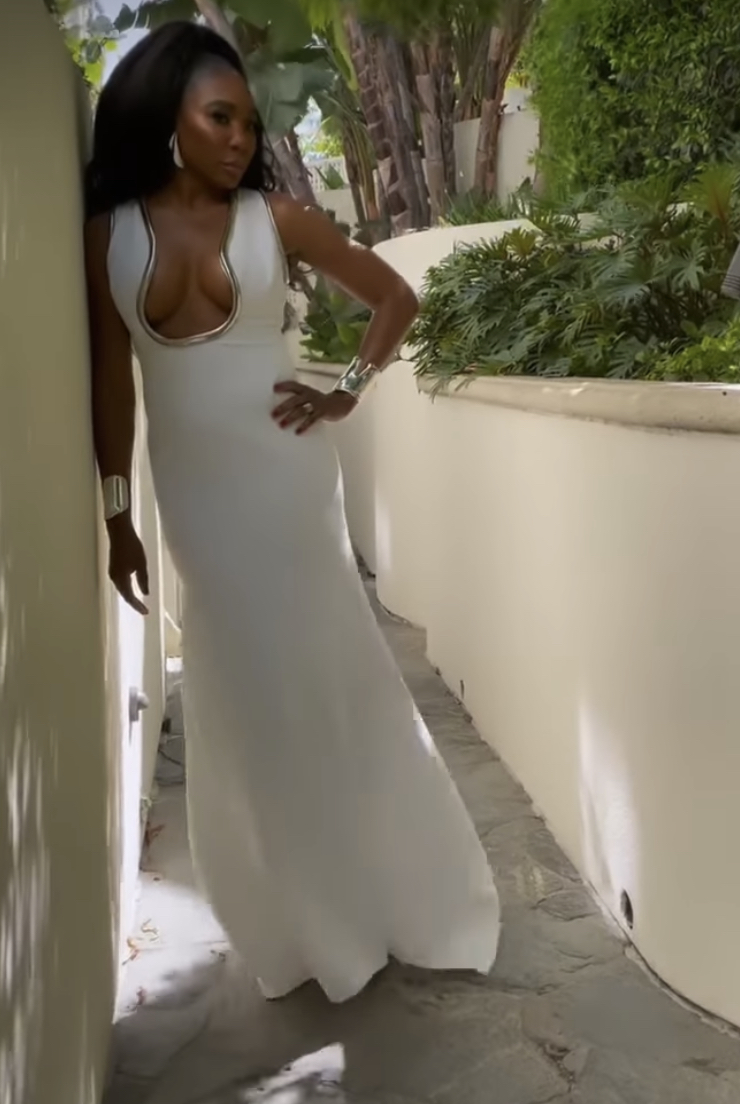 Williams blessed the red carpet with a white gown by Elie Saab, which boasted an exposed neckline, detailed with a metal lining.
