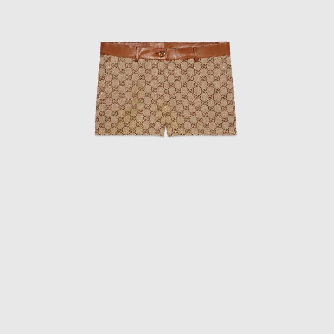 The GG motif is a subtle nod to the theme of reinvention that appears throughout the House’s narrative. First used in the ’70s, the monogram is an evolution of the Gucci Rhombi design—a pattern from the ’30s archives. A part of the Aria collection, it appears atop these shorts with leather trims.