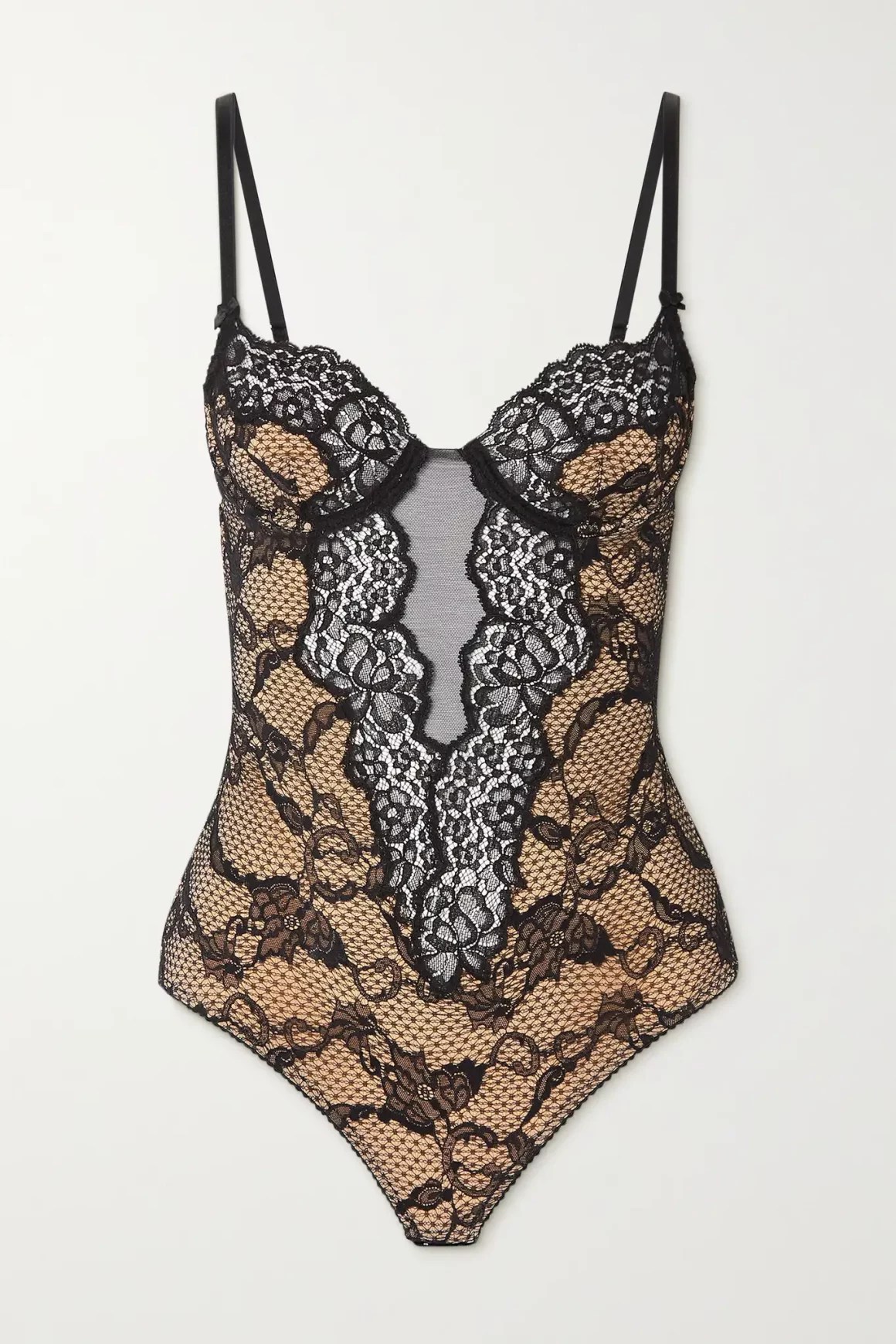 Lingerie as outwear has been a key runway trend for several seasons, and Gucci is always in on the action. Made from black lace and tulle, this figure-hugging bodysuit includes a built-in bra for extra support and has fully adjustable straps. Wear it with an oversized blazer for a look that’s daringly chic.