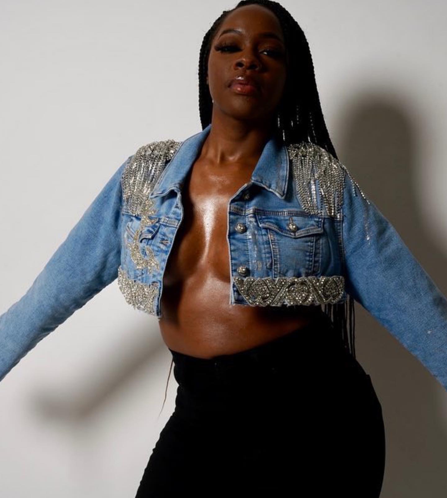 This line was born of a heartbreak, that turned into a book, then a clothing line. Ms. Bentleyy writes, “I started off writing a book because I was so heartbroken which had led to my 3-month depression. I didn’t want to keep bothering my friends about the same situation. I’m a thinker so I kept thinking of a perfect scenario for us and what our relationship would be in a perfect yet not so perfect world. I kept going and I self-published my first book five months later. With that, I started selling book Merch, I designed a slogan that said, “I could tell you a great story and surround it with diamonds, money and a broken heart.” For my book launch I wanted to design my own blazer, but I didn’t think I could do it. Once my book launched and went into sales, I started doing my fashion research, and experimenting on a moto jacket I wanted to design. I designed it and this was how I birthed GlitzGalore.”