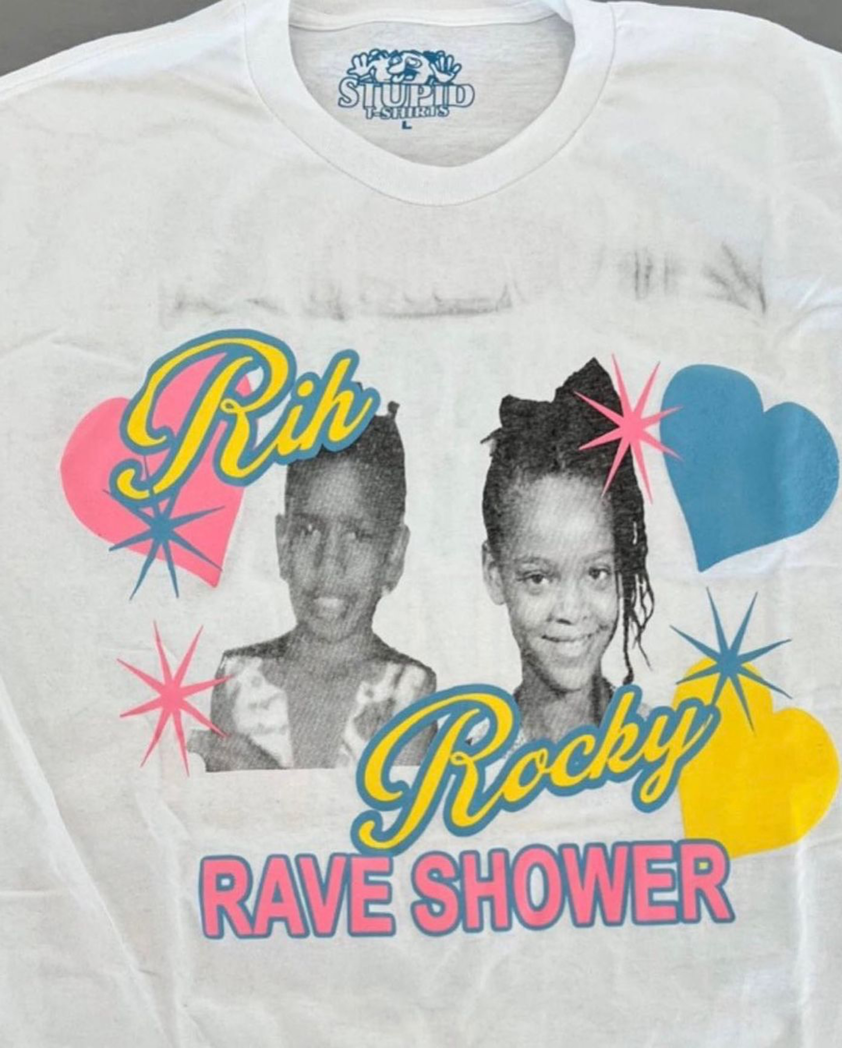 Rihanna and ASAP Rocky secretly held a baby shower, and gifted their guests with T-Shirts donning their childhood photos from Stupid T-Shirts.