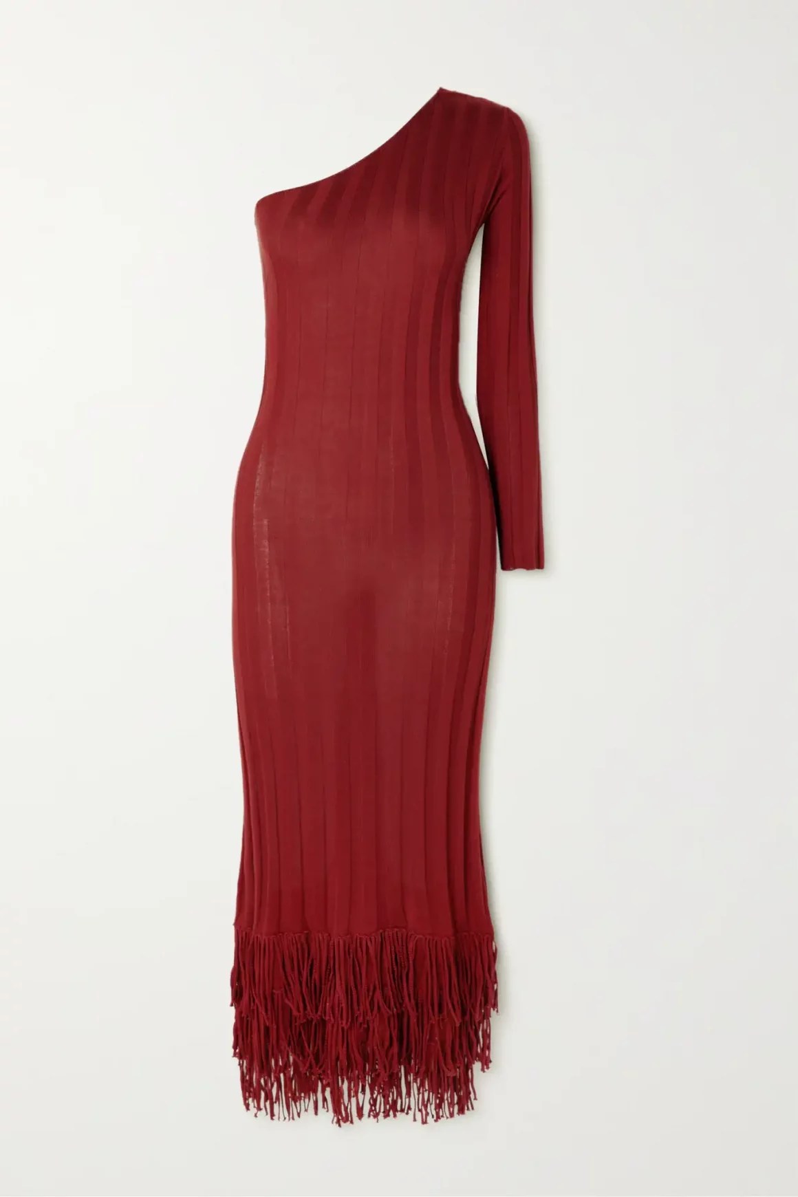 Get the look: $900 Lukhanyo MdingiI One-Shoulder Fringed Ribbed Silk Maxi Dress