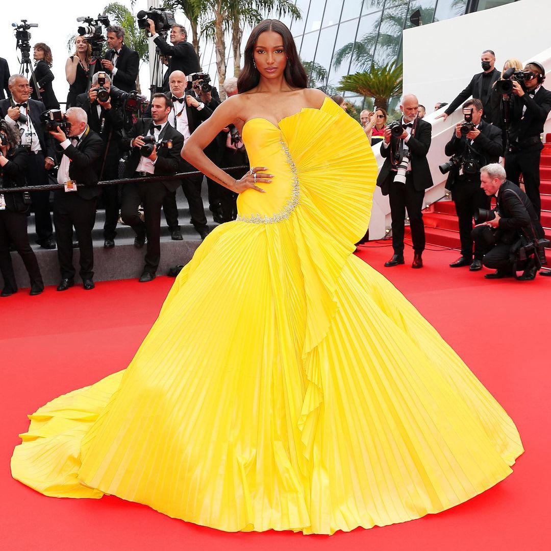 Shining bright like the sun in Tony Ward Couture, Jasmine Tookes was styled by her mother Cary Robinson. The pleated, sweetheart neckline gown featured jewel detailing through the bodice, the perfect touch.