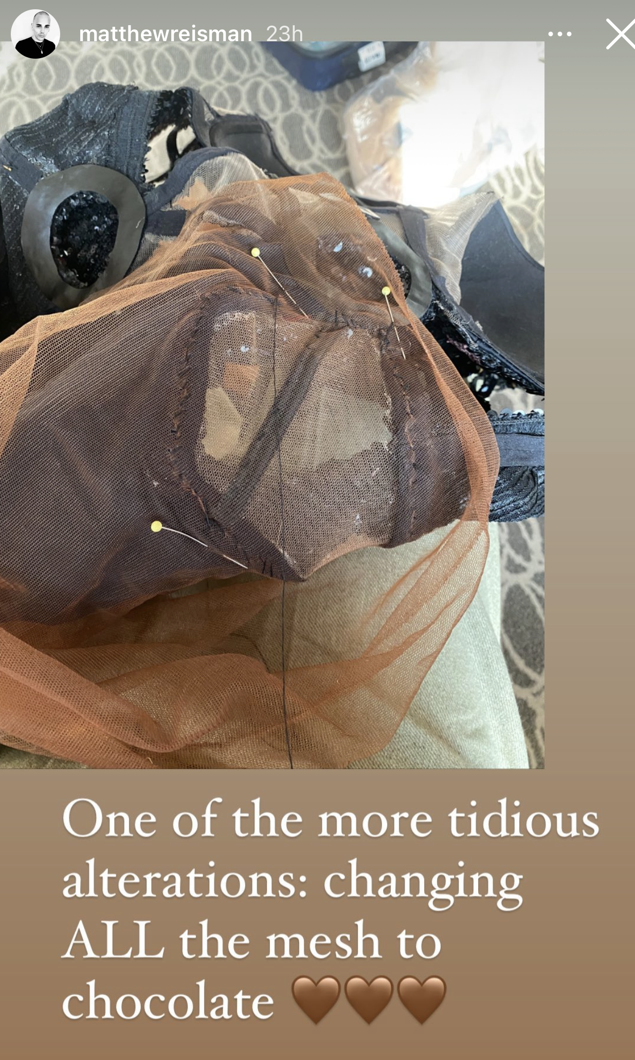 The Connecticut Native got his start in bridal at Monique Lhuillier, and now works with Mary J Blige, Rihanna, Lizzo, Cardi B, and more. I was initially intrigued to learn more about his story when I saw how he painstakingly swapped out nude fabric in a Julien Macdonald dress for Mary J. Blige to a mesh fabric with a chocolate tone, to give the dress its intended nude illusion.