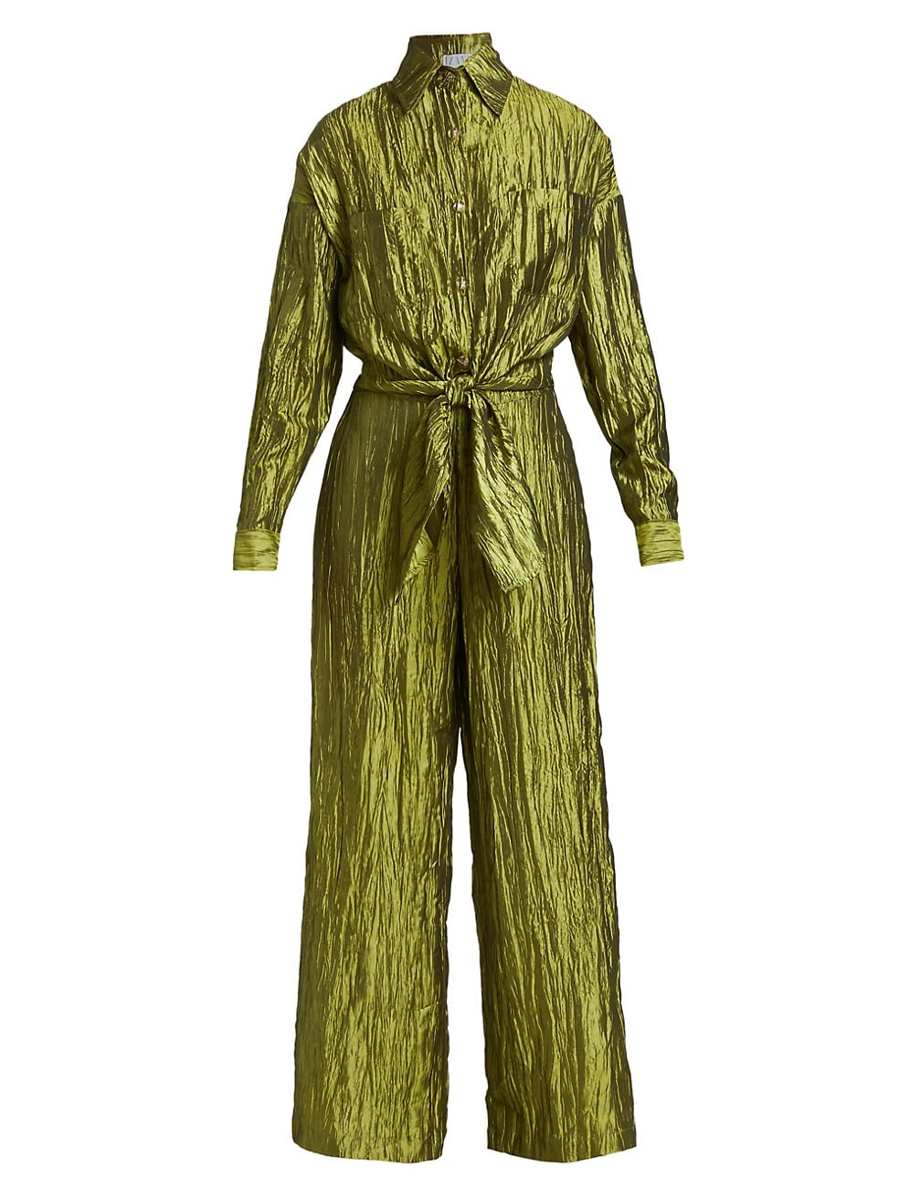 Cut in the brand’s signature silhouette from crinkled satin, this jumpsuit features an easy elastic waist, tied front, and straight legs.