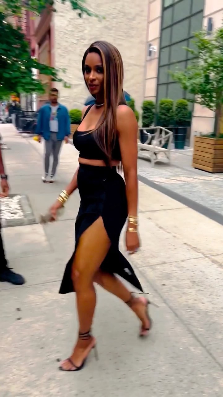 In a recent post to her Instagram account, fans flooded the comment section in awe of Ciara wearing a black crop tank and button up side slit skirt from her line Lita by Ciara! In the reel, Cici is seen graciously walking down the street, adorned with gold bangles on either side and a gold choker necklace as well.