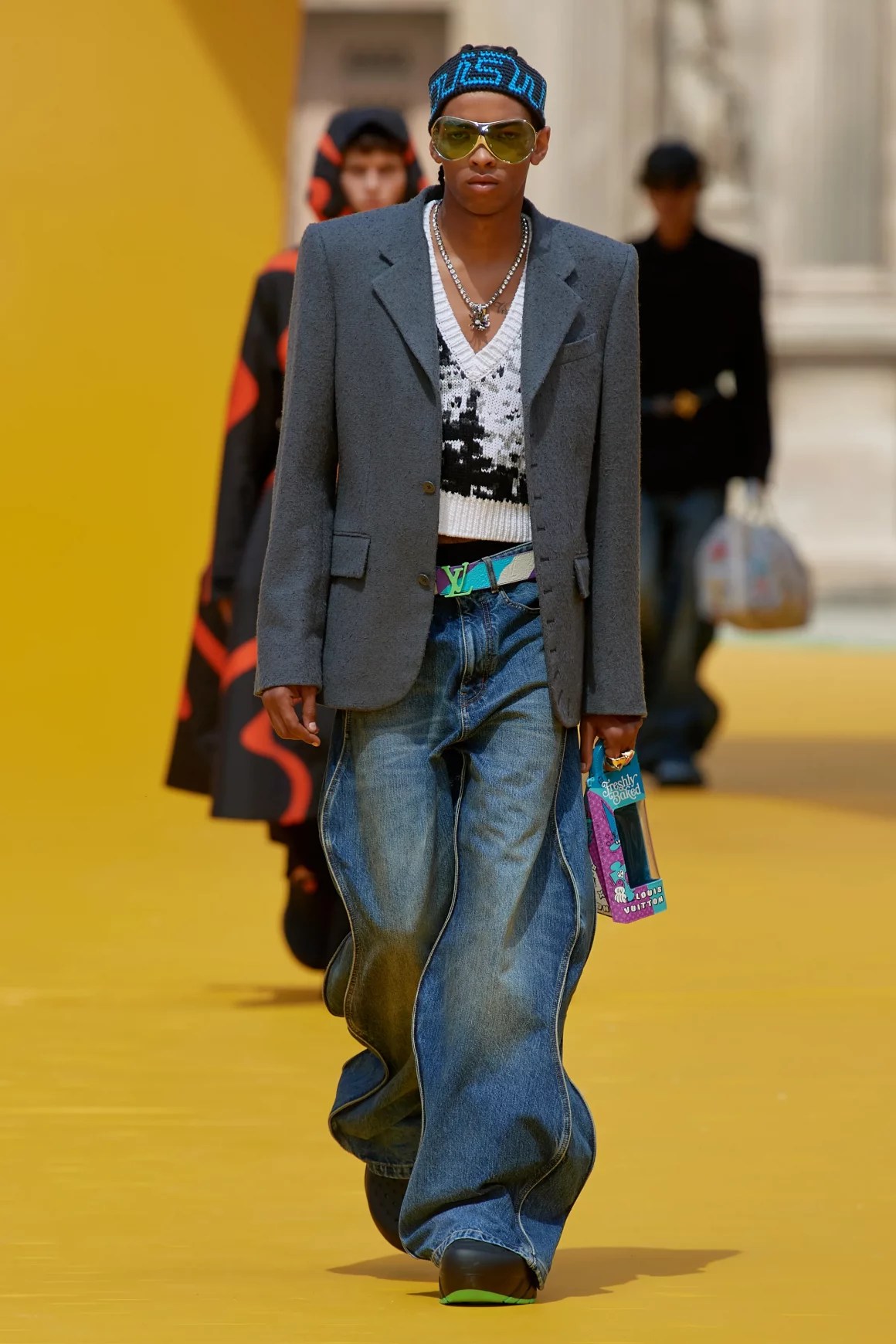 Gone but never forgotten, a live marching band and performance by Kendrick Lamar swept the runway during the LV menswear fashion show in memory of Virgil Abloh. Just like Virgil, the designers behind the show knew no bounds as they designed the collection upon the concept of free play. The end result was a series of imaginative and creative garments including wavy baggy trousers, boxy and cropped blazers along with vibrant color choices contrasted against muted ones.