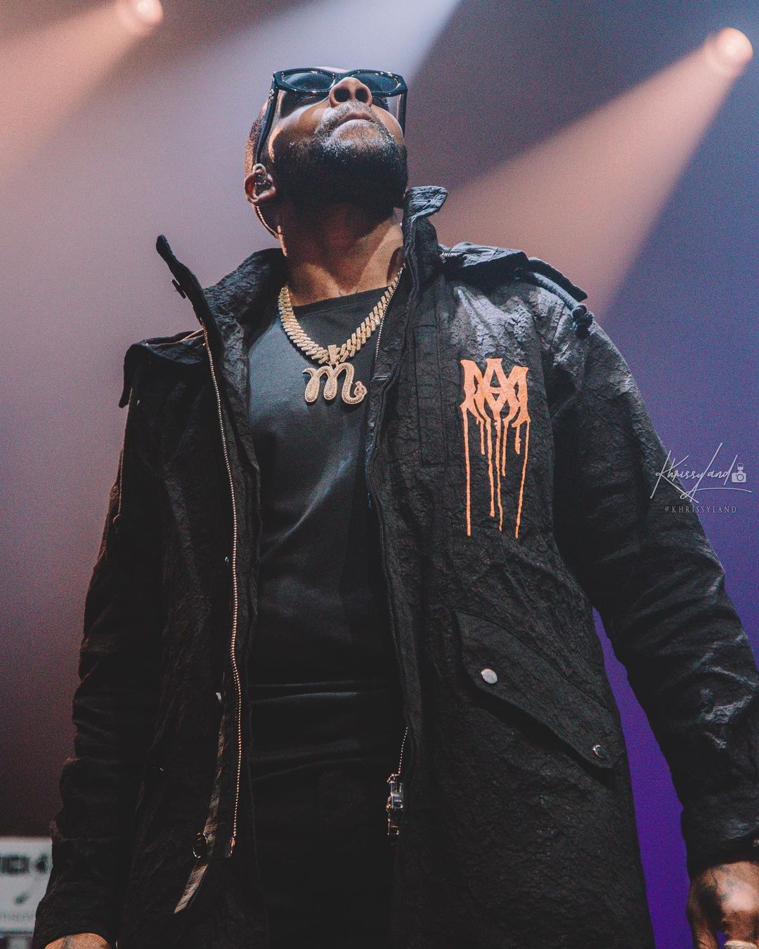 Mario hit the stage with an all black outfit, including a long Amiri logo coat costing $2,662 as he shut down the entire concert!